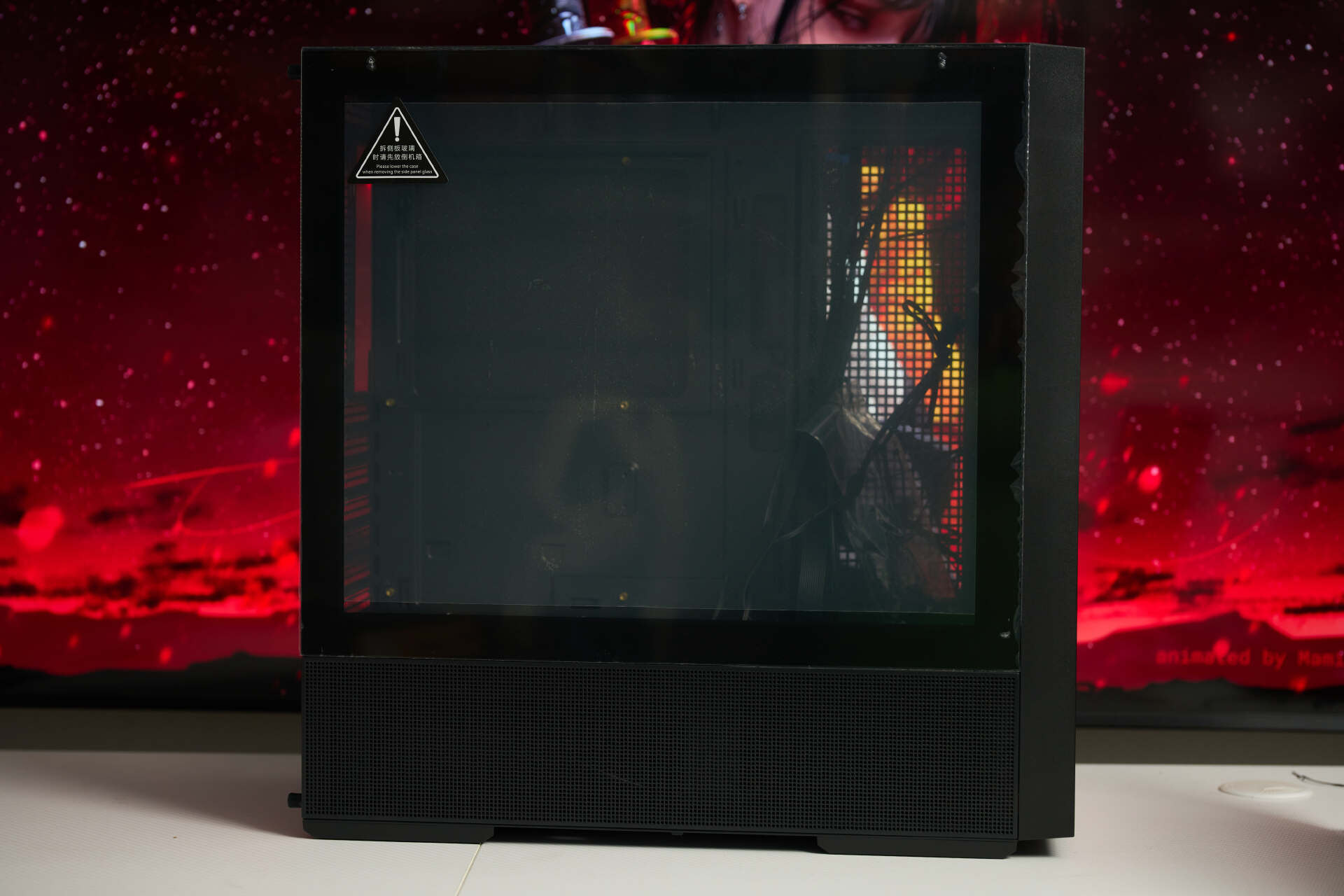 安耐美风屿 K1 的设计很懂 “实用与颜值的平衡”—— 左侧保留侧透设计,既不丢视觉观赏性,电源仓侧面还额外做了大面积散热网孔;不同于常规分仓机箱,它更通过电源前置的布局,直接为底部散热风扇预留出完整风道,让底部进风能顺畅流通。