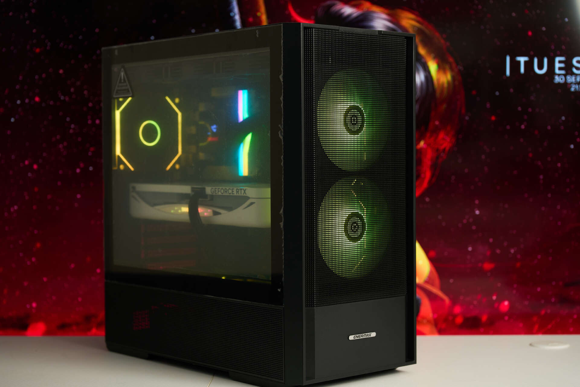 本次装机采用的是英特尔® 酷睿™ Ultra 5 处理器 225F,CPU散热使用的是安耐美LIQMAX IV 360水冷散热,不过我没有给水冷换装发光风扇,虽然换装了也不影响性能,但我不想把RGB拉满,安装好驱动之后,冷头就显示CPU,GPU等信息了,ENERMAX的LOGO则是开机就会亮。