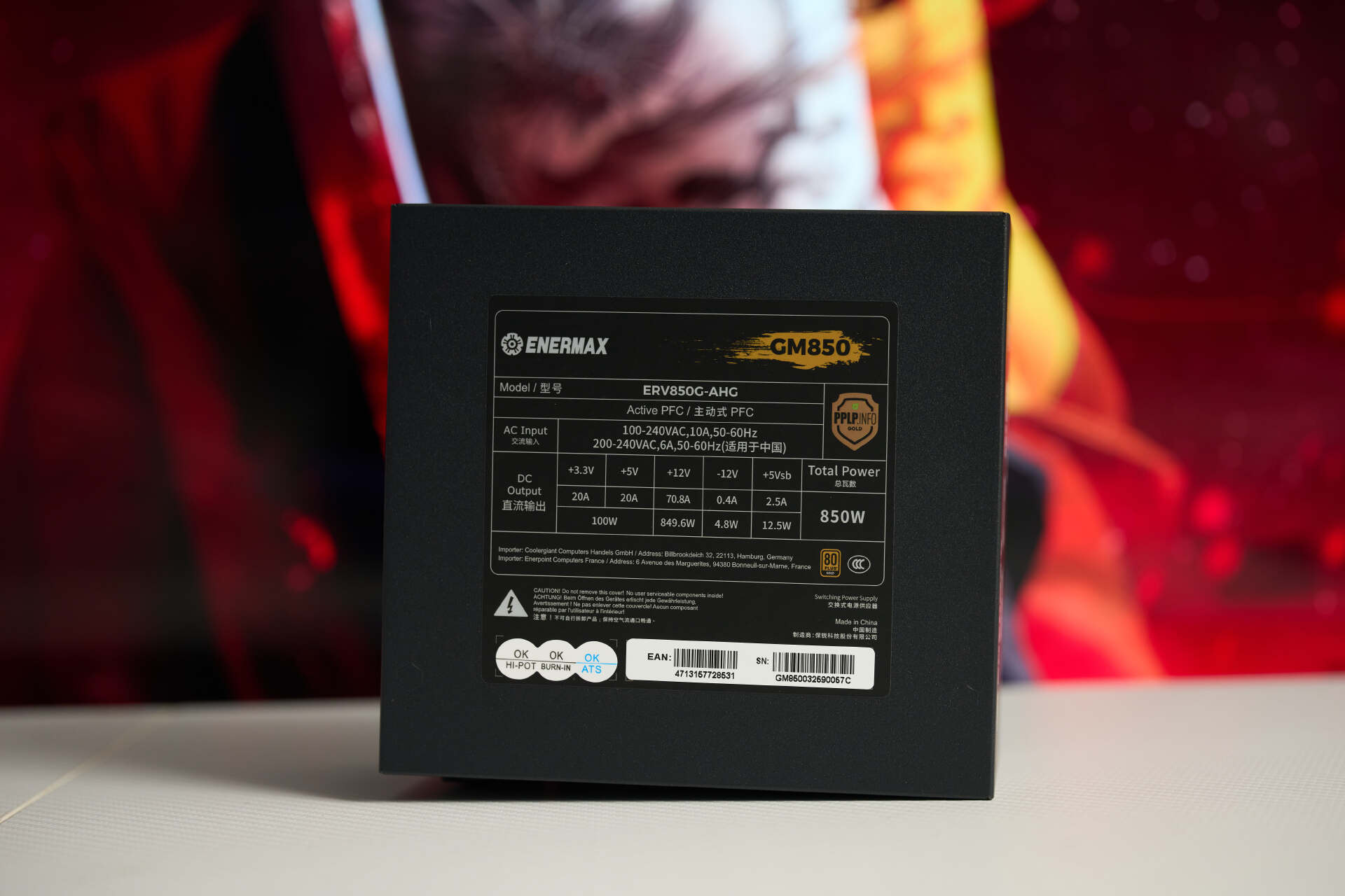 电源同样选择安耐美,为此前拆解测评过的金竞蝠 GM850双金牌全模组款。其符合 ATX3.1 规范,配备原生 12V-2x6 安全接口,获 80PLUS 与 PPLP 双金牌认证,转换效率接近白金级,之前我还测过白金竞蝠,都是性价比比较高的电源。