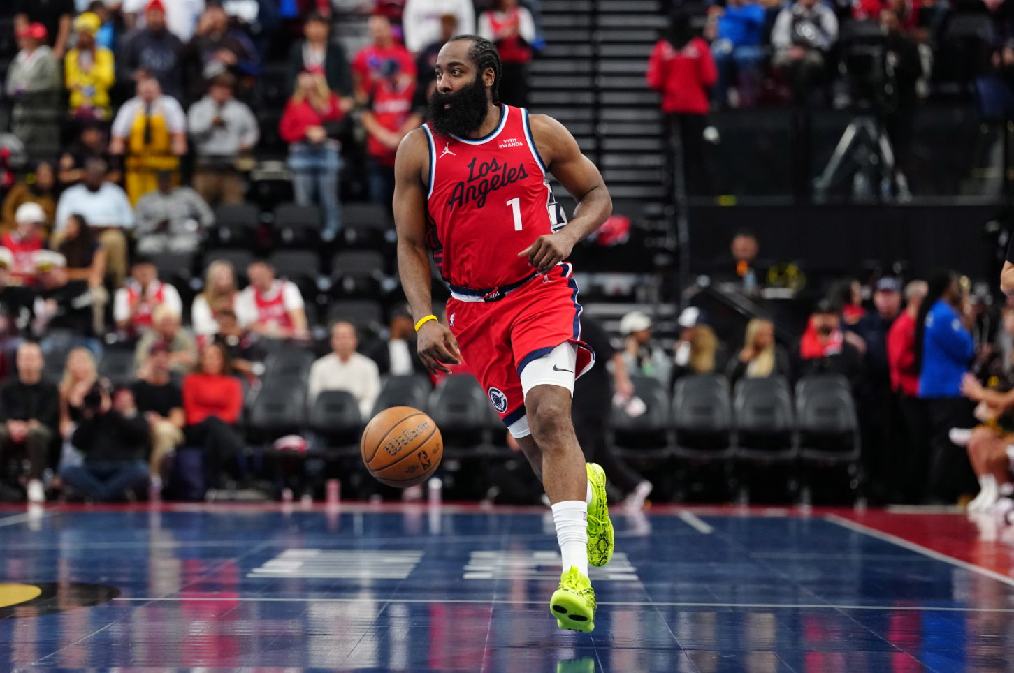 快船的核心球员表现参差不齐。莱昂纳德作为球队头号得分手,场均能贡献24.3分5.7篮板3.5助攻,但他因脚踝扭伤已连续缺席多场比赛。36岁的哈登不得不独自扛起球队,场均得到23.4分9.3助攻。在上场对阵老鹰的比赛中,他砍下35分10篮板11助攻的三双数据,却依然无法带领球队获胜。
