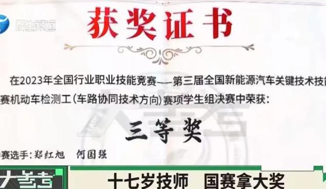 在他17岁这年,就拿到了职业技能竞赛河南组第一,全国决赛第三的好成绩,而且十七岁的他就已经获得了国家所颁发的二级证书!