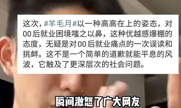 这位网红博主叫做“羊毛月”,他最近也是发布了一条关于吐槽年轻人,找工作困难的视频,在互联网上引起了非常大的反响。