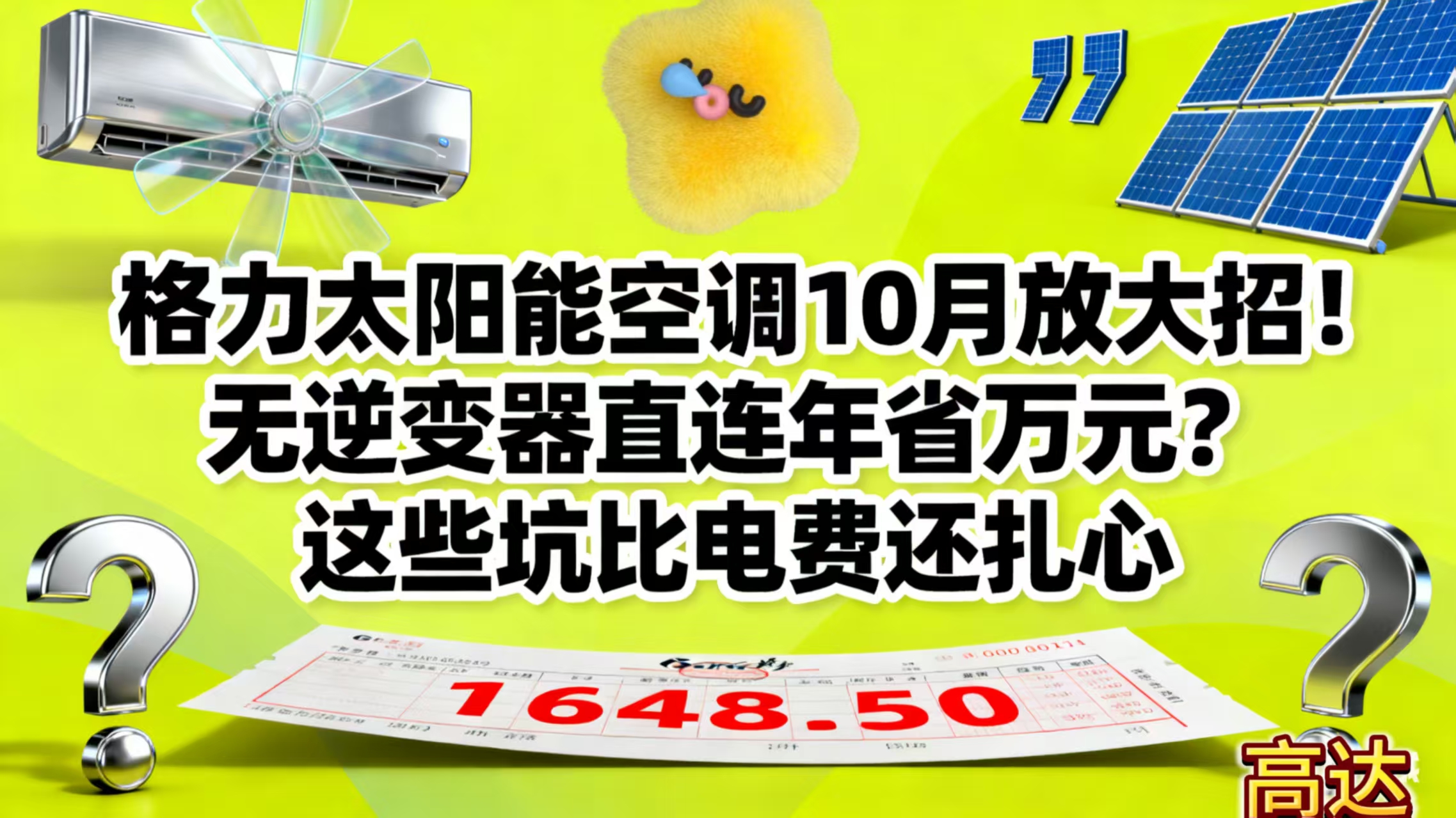 2025年10月,格力推出太阳能空调“黑科技”——无逆变器直连技术,通过优化压缩机电机直采光伏直流电,宣称年省电费可达万元,能源利用率提升15%。“空调免电费”的欢呼刷屏,但技术解析与实测显示,“省钱神话”背后的门槛与隐患更值得警惕。