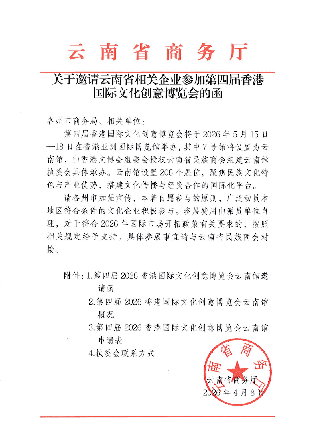 2026年4月10日,第四届香港国际文化创意博览会(以下简称“香港文博会”)云南馆启动仪式在昆明隆重举行,标志着云南民族文化借助香港文博会平台走向国际的筹备工作全面进入冲刺阶段。本次启动仪式汇聚多方力量,为云南馆顺利参展、企业出海保驾护航,清晰传递各项扶持政策与发展利好,助力云南文创产业高质量发展。