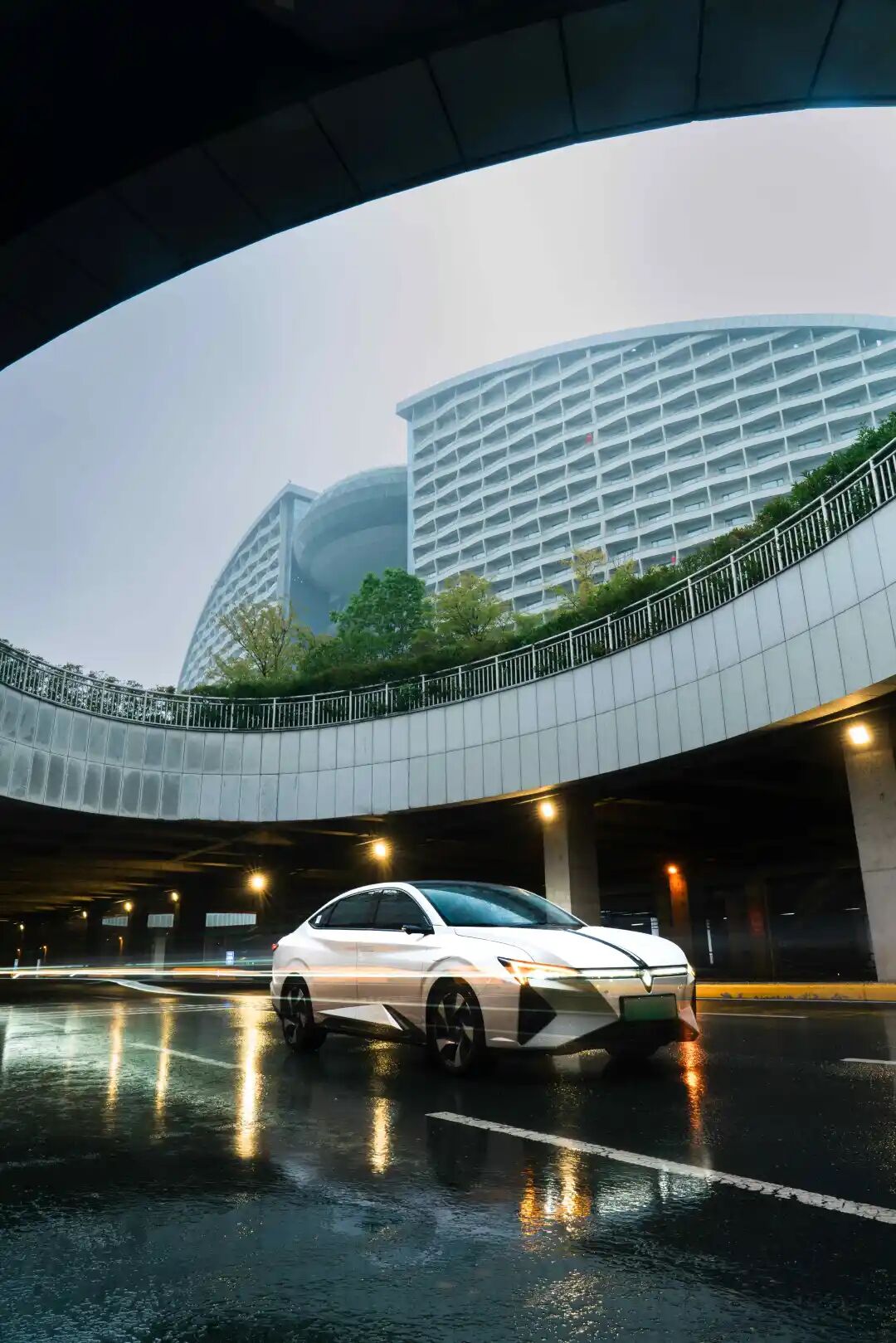 傍晚时分,猎光e:NS2驶入光谷广场,其独特的光电美学设计与“星河”雕塑的流动光影完美呼应。作为武汉的创新心脏,光谷汇聚着无数科创企业与青年才俊,而这台车的智能科技内核正与这片土地的创新基因不谋而合。车内,氛围灯随音乐律动,大屏实时呈现路况与能量管理;车外,高楼林立,霓虹闪烁,处处跃动着现代都市的脉搏。猎光e:NS2不仅是交通工具,更是武汉创新精神的移动载体——既要追逐科技的星辰大海,也离不开街巷的烟火日常。