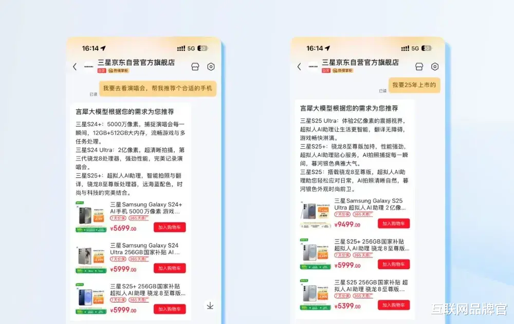 进化成“金牌销售”,才是智能客服的核心要义!对商家而言,客服的终极目标不是“解决问题”,而是“推动转化”。京小智5.0的大模型导购Agent,则像一个善于揣摩不同用户需求与心意的“情场老手”,又像是摸爬滚打了几十年的资深导购兼金牌销售,不会放过任何一次将用户咨询转化为成交的机会。据悉该Agent内测期间,推理速度翻倍的同时,商品推荐准确率可提升40%以上。三星京东自营旗舰店的案例极具代表性。当用户说“要去看演唱会”,它不会堆砌“2亿像素主摄+骁龙8处理器”的参数,而是直接推荐“镜头超稳,能捕捉演唱会每一个瞬间”的S25 Ultra;当用户补充“需要2025年上市的新品”,Agent会立刻更新推荐列表,排除旧款机型。这种场景化导购的效果立竿见影:自引入京小智 AI Sales后,三星旗舰店导购场景的转化率提升27.6%,转人工率降低43%,用户满意度更是飙升70.9%。