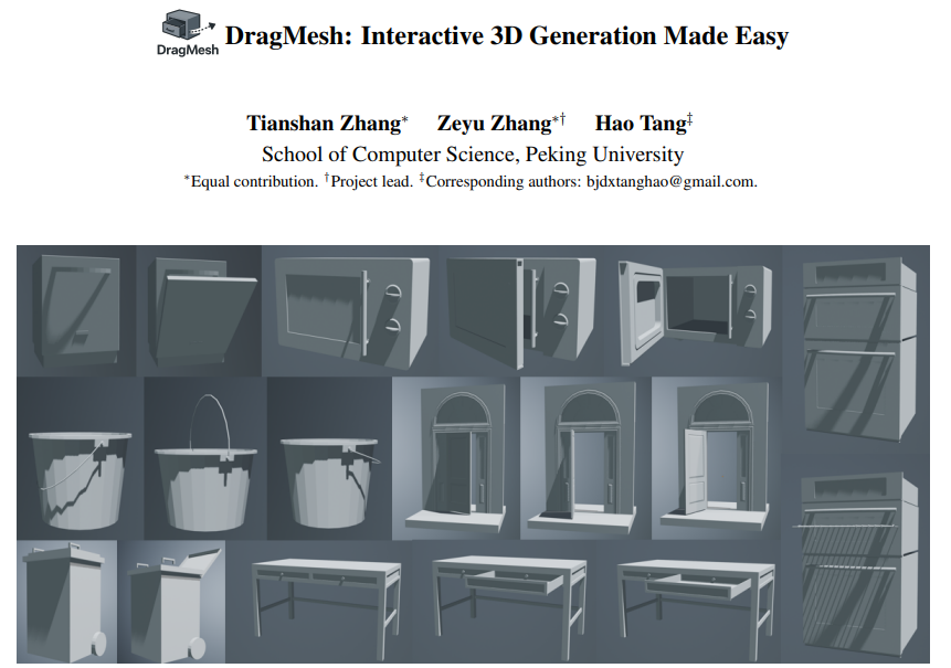 这项由北京大学计算机科学学院张天山、张泽宇和唐昊团队完成的研究发表于2025年12月,研究成果已在arXiv平台发布,论文编号为2512.06424v1。有兴趣深入了解的读者可以通过该编号查询完整论文,或访问研究团队的开源代码和项目网站。 想象一个魔法世界,你只需要用手指轻轻一拖,就能让微波炉门开合、抽屉滑进滑出、门扇旋转摆动。在现实中这听起来不可思议,但在3D虚拟世界中,这正是北京大学研究团队努力实现的梦想。就像小时候玩拼图积木一样,他们希望让人们能够直观地操作虚拟物体,让它们按照物理规律自然地运动。 这个名为DragMesh的系统可以说是虚拟世界的"物理老师"。当你用鼠标拖拽一个虚拟桶的把手时,它不是简单地让把手瞬间移动到你想要的位置,而是聪明地推理出"啊,这是一个旋转关节",然后让整个桶把手沿着正确的轴线优雅地旋转。这就像有一个看不见的物理学家在背后计算,确保所有运动都符合真实世界的物理法则。 在过去,让虚拟物体动起来一直是个棘手的问题。研究人员面临着一个进退两难的局面:要么选择计算准确但速度缓慢的方法,用户得等上好几分钟才能看到结果,这种体验就像拨号上网时代等待网页加载一样痛苦;要么选择反应迅速但物理效果不准确的方法,虚拟物体可能会出现穿越墙壁、违背重力等奇怪现象,就像看到一部特效很假的科幻电影。 北京大学团队的创新之处在于设计了一个"分工合作"的智能系统。这个系统就像一个经验丰富的工程师团队:首先有一位"语义专家"(大语言模型)负责理解用户的意图,判断这个操作是要旋转还是平移;然后有一位"几何专家"(运动学预测网络KPP-Net)专门计算物体应该如何运动,确定旋转轴和旋转中心;最后有一位"动画师"(双四元数变分自编码器DQ-VAE)负责生成流畅自然的运动轨迹。 这种分工方式的好处就像组装汽车的流水线:每个部件都专注于自己最擅长的工作,整体效率大大提升。而且,一旦训练完成,这个"动画师"可以为任何新物体工作,不需要重新学习,就像一个熟练的画家可以画任何题材的画作一样。 在技术实现上,研究团队选择了双四元数这种特殊的数学工具来描述物体运动。双四元数就像是运动世界的"万能钥匙",能够用最简洁的方式精确描述任何刚体的旋转和平移。相比于传统方法可能需要12个数字才能描述的运动,双四元数只需要8个数字,而且不会出现"万向节锁死"这种数学奇点问题,就像用更简洁的密码来存储更复杂的信息。 系统的核心是一个精心设计的神经网络架构,它能够同时处理三种不同类型的输入信息。第一种是三维点云数据,就像物体的"指纹",包含了形状的详细信息;第二种是关节条件信息,告诉系统这个关节是旋转型还是平移型,以及旋转轴和旋转中心在哪里;第三种是运动意图信息,包含用户的拖拽方向和轨迹。 这些信息经过精心设计的融合机制进行整合,就像调制鸡尾酒一样,每种成分都按照特定比例混合,最终产生完美的效果。特别值得一提的是,系统使用了FiLM(特征线性调制)技术,确保关节约束条件能够在网络的每一层都发挥指导作用,就像有一个严格的质量检查员在每个环节都确保产品符合标准。 为了保证生成的运动既自然又符合物理定律,研究团队设计了一套复杂的训练目标。这套目标不仅要求几何精度,还包含了物理约束损失函数。比如,对于旋转关节,系统会严格检查是否存在不应该有的平移运动;对于平移关节,则会检查是否出现了不应该有的旋转。这就像有一位严格的体操教练,不仅要求动作优美,还要求每个细节都完全符合规范。 在运动学预测方面,KPP-Net网络专门负责从物体几何形状和用户交互中推断出准确的关节参数。这个网络采用了双流设计,一个分支处理全局信息,另一个分支专注于局部细节,然后将两者的见解结合起来做出最终判断。这种设计类似于医生诊断时既要看整体症状,又要关注局部细节的综合判断过程。 在实际推理阶段,系统采用了完全无标注的工作流程。用户只需要提供原始网格模型和拖拽操作,系统就能自动完成整个分析过程。首先使用现成的部件分割模型识别可动部件,然后通过大语言模型进行语义推理,判断运动类型,接着用KPP-Net进行几何回归,最后通过训练好的双四元数VAE生成完整的动画序列。 研究团队在GAPartNet数据集上进行了全面的实验验证。这个数据集包含了丰富的交互式物体模型,覆盖了从家具到电器的多个类别。实验结果显示,DragMesh在保持高质量输出的同时,计算开销仅为现有可泛化方法的五分之一到十分之一。这种效率提升就像从老式拨号上网升级到光纤宽带一样显著。 在几何精度方面,系统能够在毫米级别上准确重建物体形状,倒角距离误差控制在10^-3量级。在物理约束方面,轴向误差控制在0.265毫弧度以内,几乎达到了完美的物理一致性。这种精度水平相当于在一张A4纸上画直线,偏差不超过头发丝的宽度。 消融实验进一步验证了系统各个组件的重要性。研究发现,简单的基线模型虽然物理误差很低,但KL散度值表明模型并未学会正确的信息,只能生成微小的运动。加入编码器融合和FiLM调制后,模型开始能够生成丰富的表达性运动,但物理精度有所下降。通过引入物理修正模块和专门的物理损失项,最终模型在重建精度、物理可信度和运动表达性之间达到了最优平衡。 在损失函