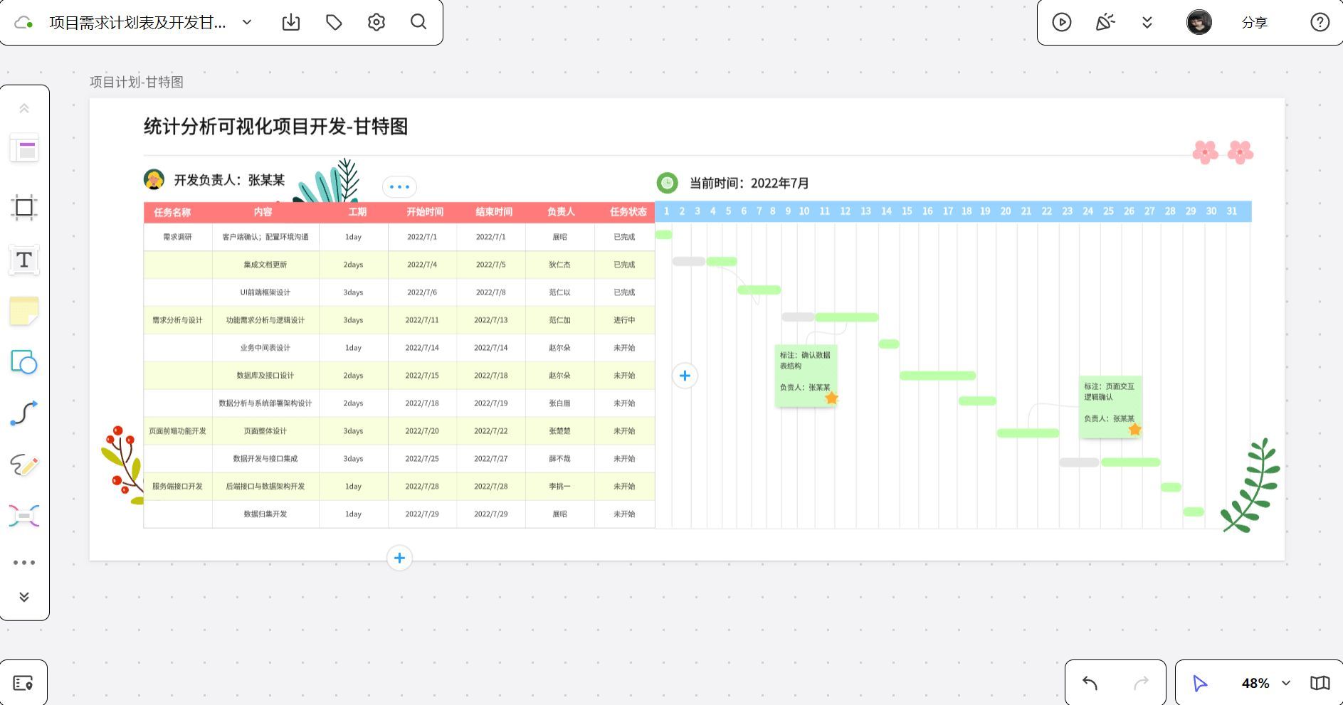 需求分析:1 月 1 日 – 1 月 10 日界面设计:1 月 11 日 – 1 月 20 日开发实现:1 月 21 日 – 2 月 20 日测试上线:2 月 21 日 – 2 月 28 日画成甘特图,领导一眼就能看出进度条走到哪儿了,这比单纯写“预计 2 月底上线”靠谱多了。