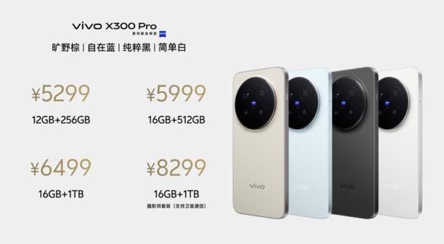 再来看看大家最关心的配色和售价!vivo X300 Pro 拥有旷野棕、自在蓝、纯粹黑、简单白四款超颜值配色,每一款都尽显高端质感,将于 10 月 17 日正式开售,起售价仅 5299 元;vivo X300 则带来幸运彩、自在蓝、惬意紫、纯粹黑四款活力配色,同样将于 10 月 17 日发售,起售价 4399 元,这样的价格搭配顶级配置,性价比直接拉满!