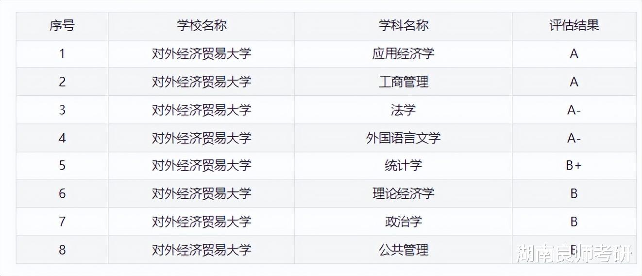 对外经济贸易大学学科评估结果