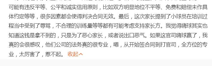 第二,契约在先,为什么不执行契约?很明显家长既想要这又想要那,明摆着就想白嫖,还有有人摇旗呐喊,以天才,年少等等来道德绑架足球培训学校。在这这件事上即使你是天才也先应当执行契约!