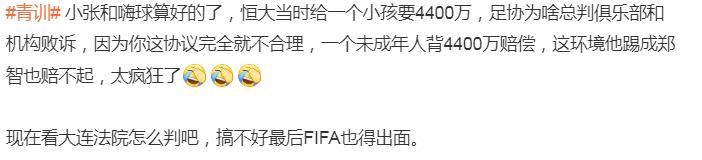 主要原因有两条,第一就是之前恒大足球学校,要找一个小球员索赔,培训费400万,违约金4000万,合计4400万,最后输了,因为这个价格太不合理了,一个球员一辈子能赚4400万吗,你一个培训机构需要这么高的成本吗,这不无理取闹吗