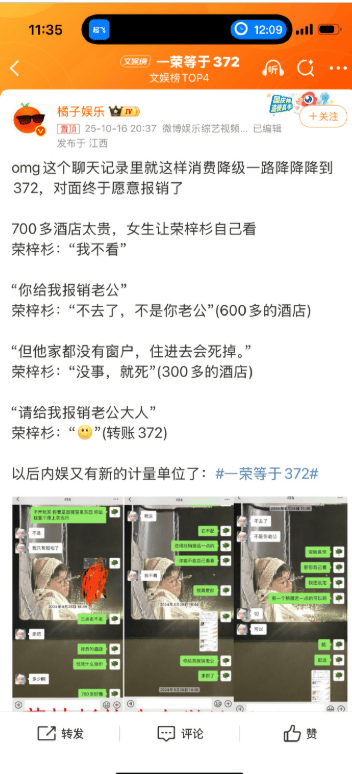 单看这段细节,很容易让人产生疑惑:荣梓杉作为年少成名、手握不少资源的艺人,财富积累显然远超普通同龄人,即便女方比自己大 4 岁,从传统认知里 “男性应多承担” 的角度出发,也不至于对几百块的房费如此 “抠抠搜搜”。要知道,若是把时间倒回 10 年前,这样的行为大概率会被舆论一边倒地批评:“连这点钱都计较,太不像个男人了”“作为男生一点绅士风度都没有”“明明有能力却这么小气,根本不懂得尊重对方”。那时的社会语境下,“男性在恋爱中多承担经济成本”“绅士风度意味着主动付出” 是主流共识,一旦男性违背这些认知,很容易被贴上负面标签。