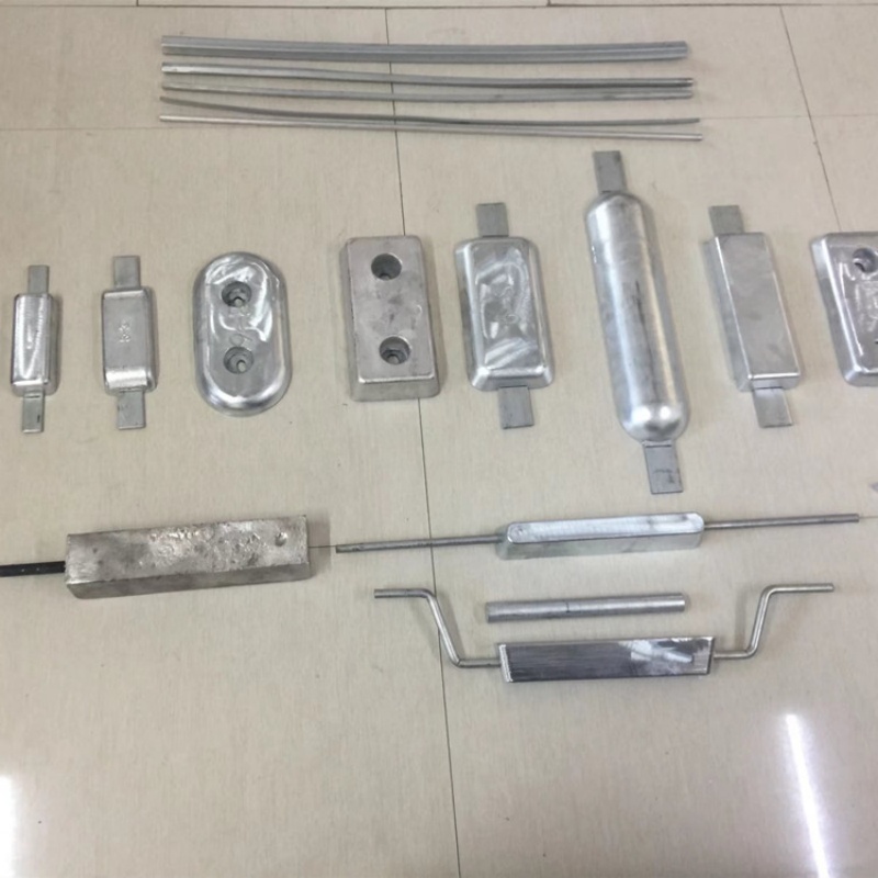 化学成分:通常以锌为主,添加铝、镉等元素。如符合 GB/T4950-2002 标准的锌合金牺牲阳极,铝含量为 0.3%-0.6%,镉含量为 0.05%-0.12%,杂质元素铁、铜、铅等含量均有严格限制。