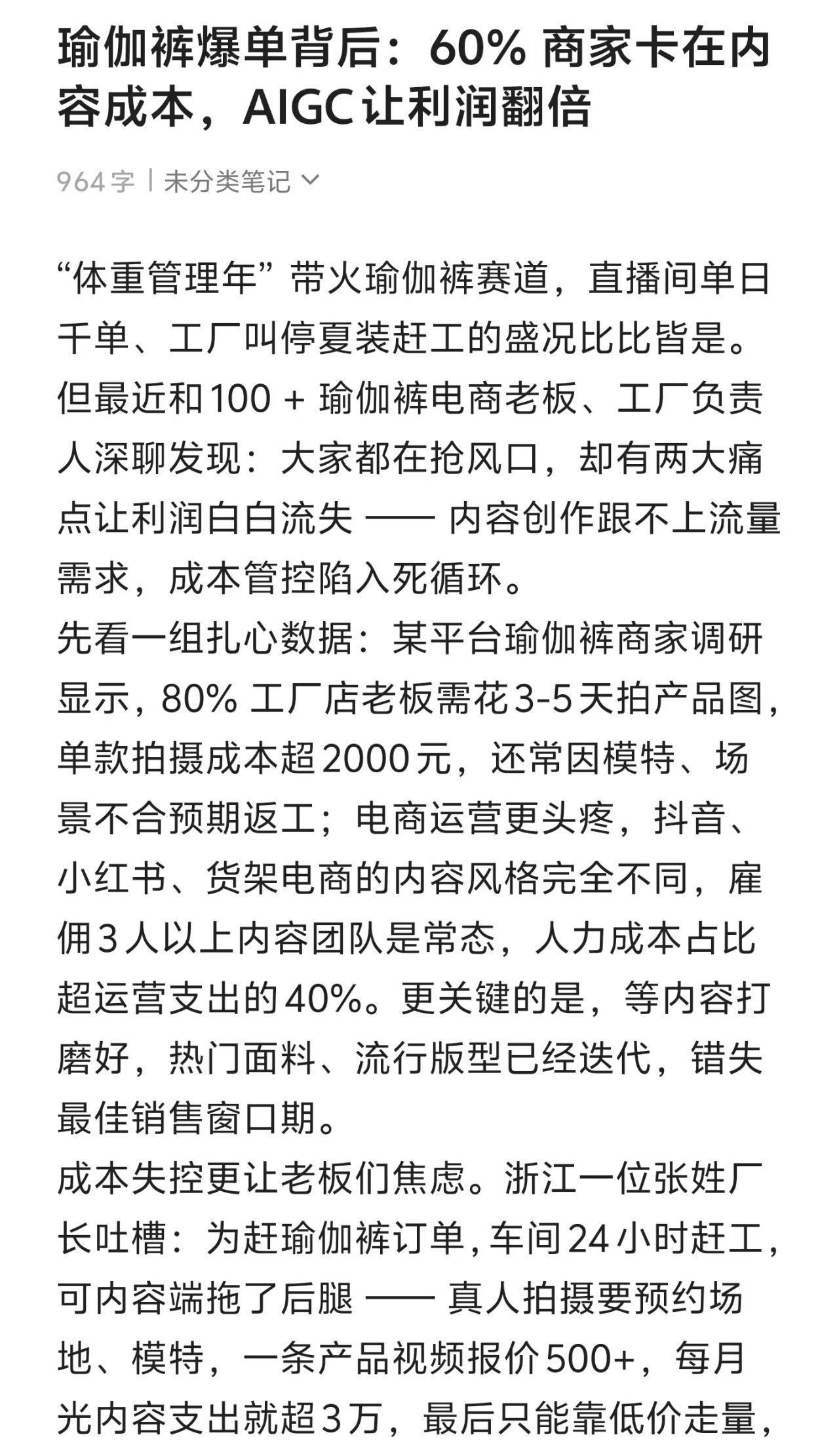 瑜伽裤爆单背后:60% 商家卡在内容成本,AIGC 让利润翻倍