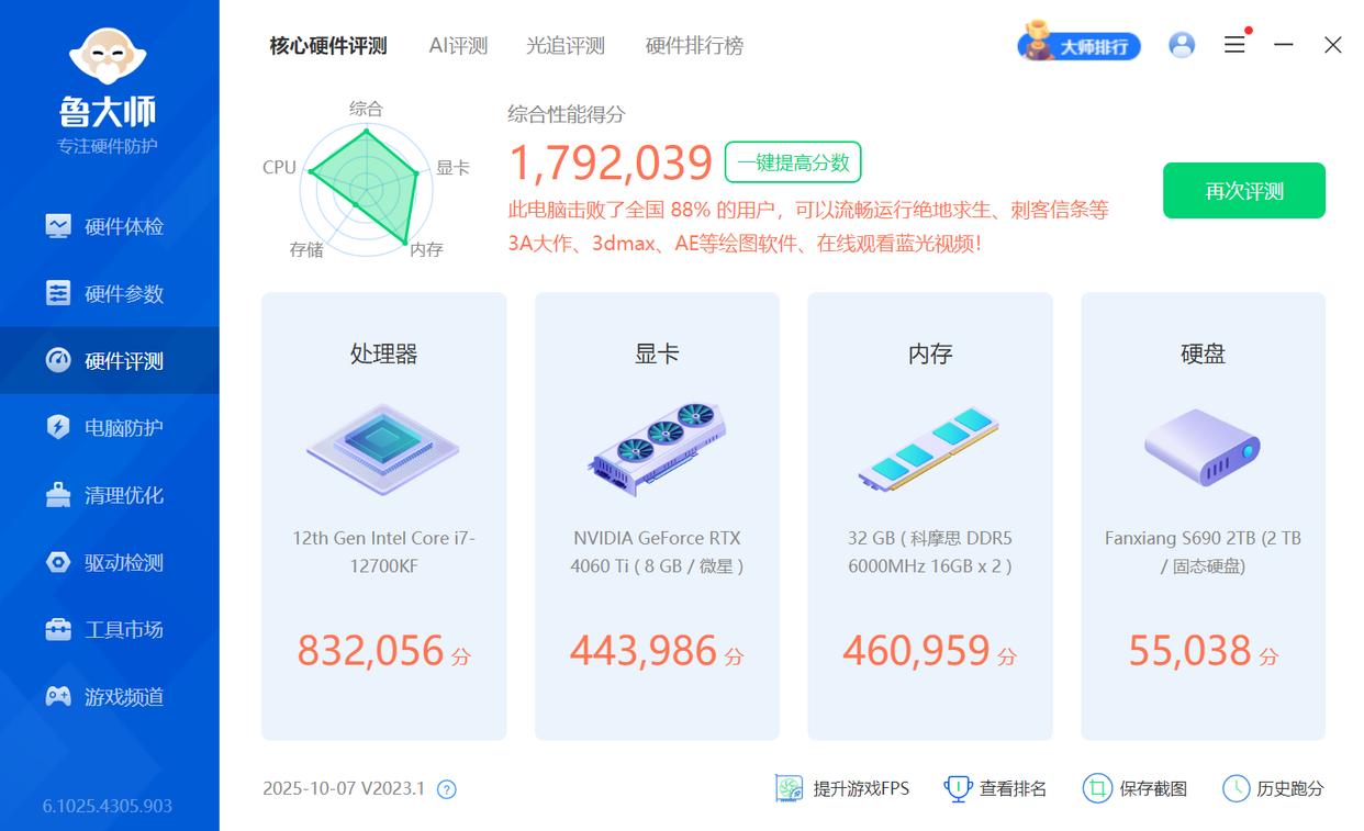 ▲鲁大师测得此频率下的内存得分为460959分,相比6000MHz时,提升了33.42%,这个性能升级,相当可观了。