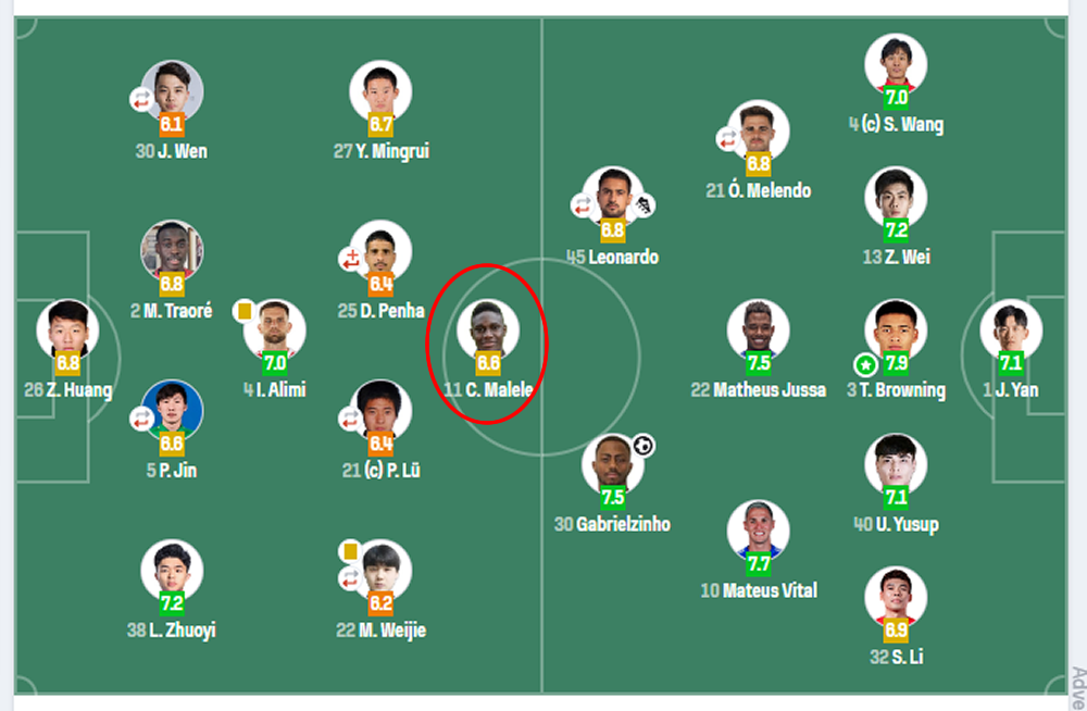 马莱莱是前申花外援,本赛季加盟了中超新军大连英博,出场26次打进6球。作为外援来讲表现一般,数据略显平庸。最后一轮是中超焦点,因为马莱莱所在球队跟上港的比赛决定了赛季中超冠军的归属。是役,大连英博全队踢得很卖力,不过马莱莱的表现再次让人失望。
