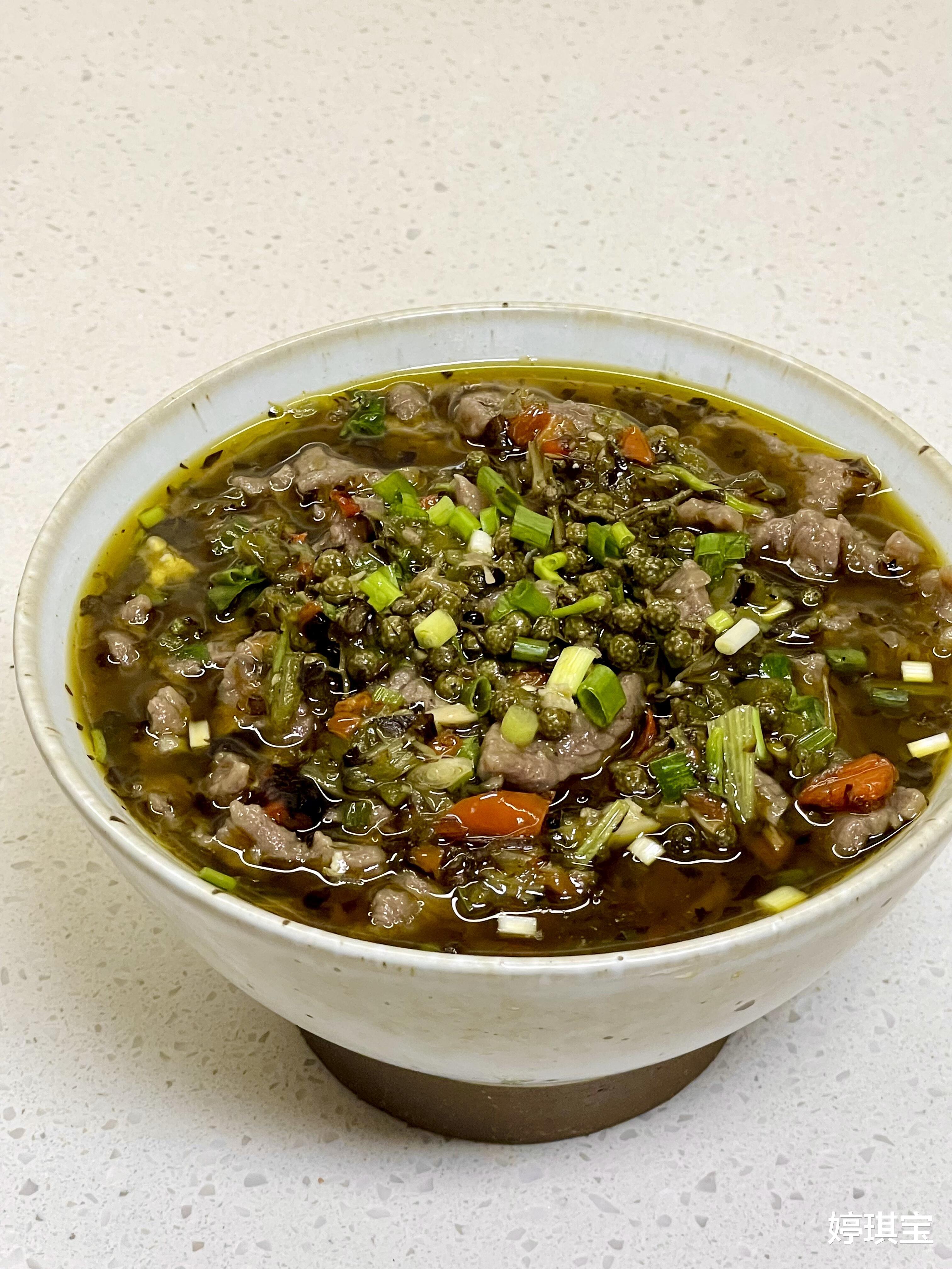 如今,这道菜成了我家的"宴客王牌"。每当有朋友来做客,这碗集柔、嫩、香于一身的烧椒豆花牛肉,总能赢得满堂彩。