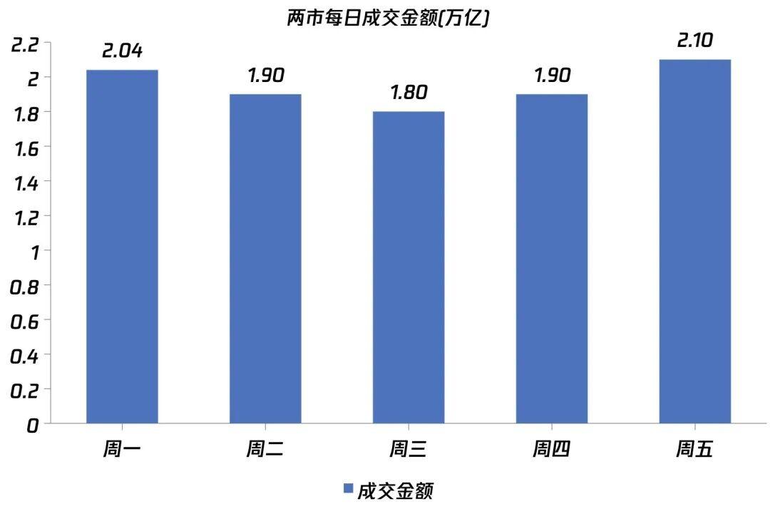 成交量方面,全周日均成交额稳定在2万亿元左右。