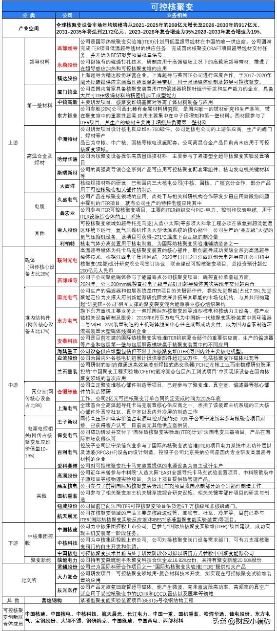 另外2025年重要会议明确提出“前瞻布局未来能源”,北京经开区近期出台专项政策,支持磁约束、惯性约束等聚变技术路径,并鼓励企业参与国际热核聚变实验堆(ITER)及国内大型装置建设。