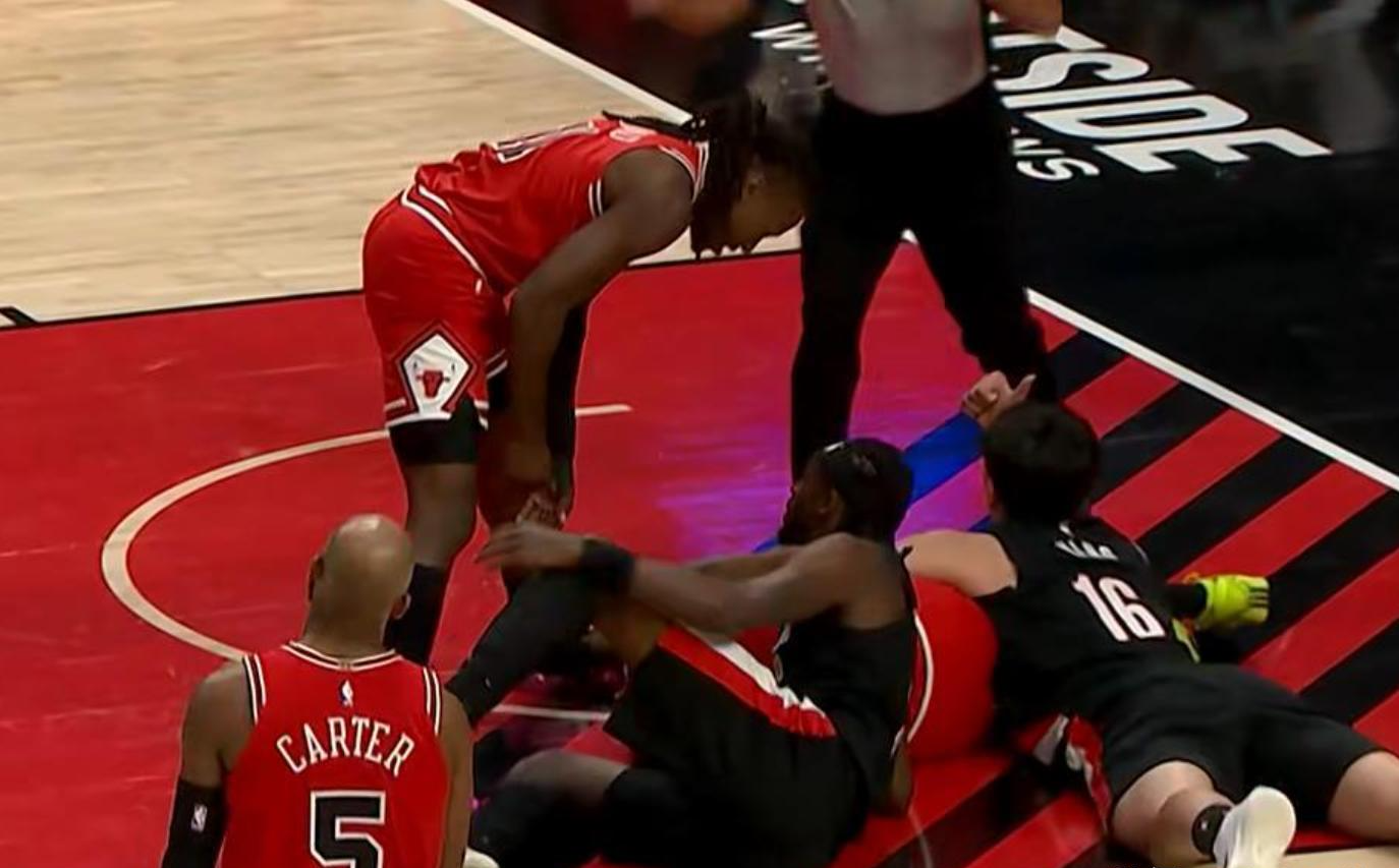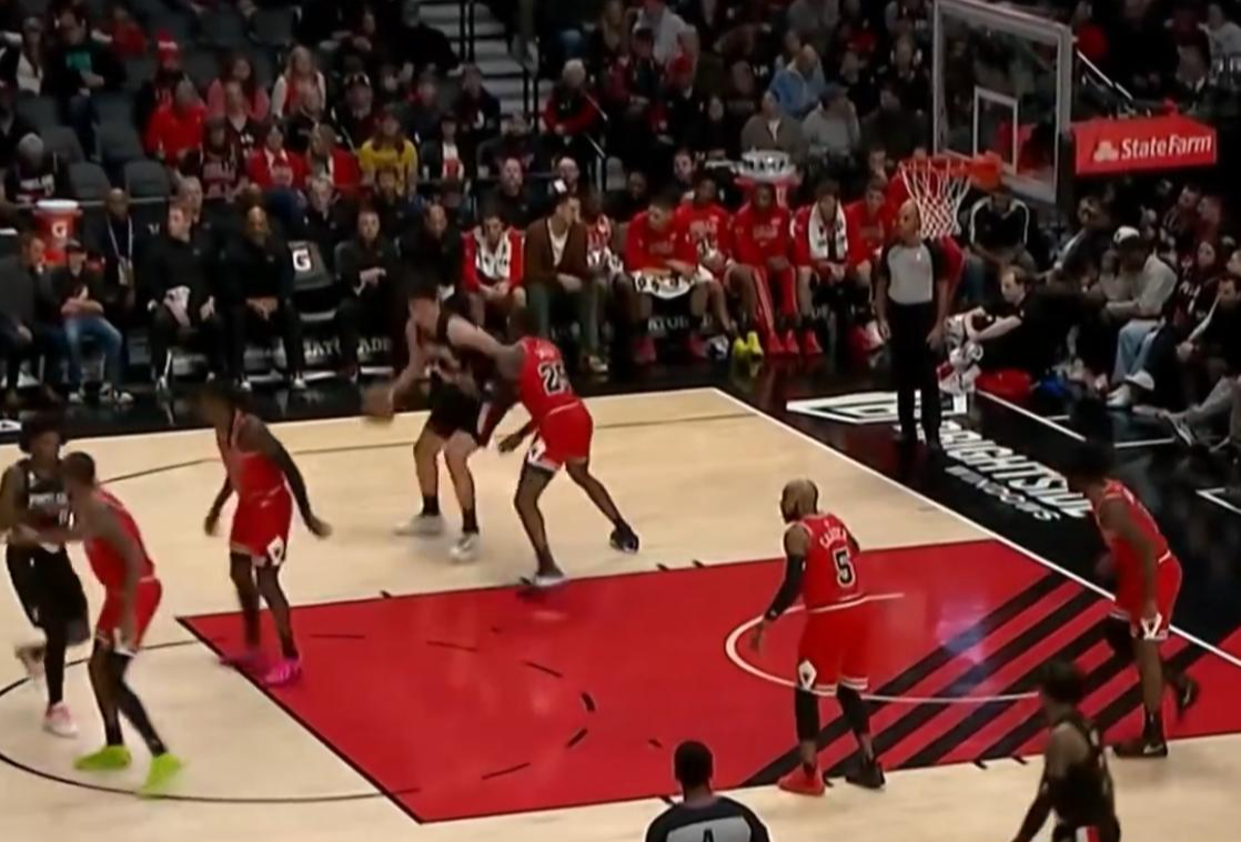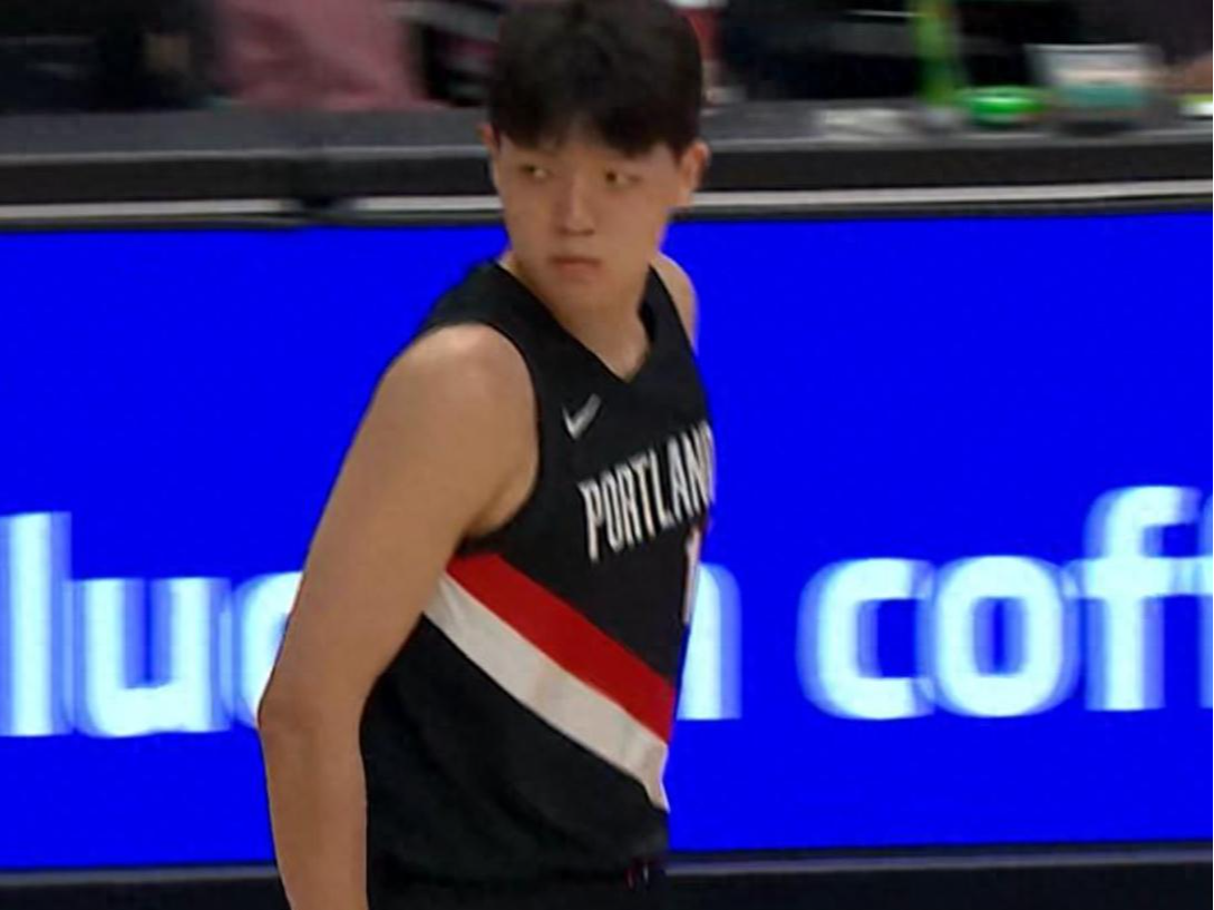 开拓者和公牛的常规赛,这场比赛杨瀚森再度获得上场,而且首节中段他就上来了。