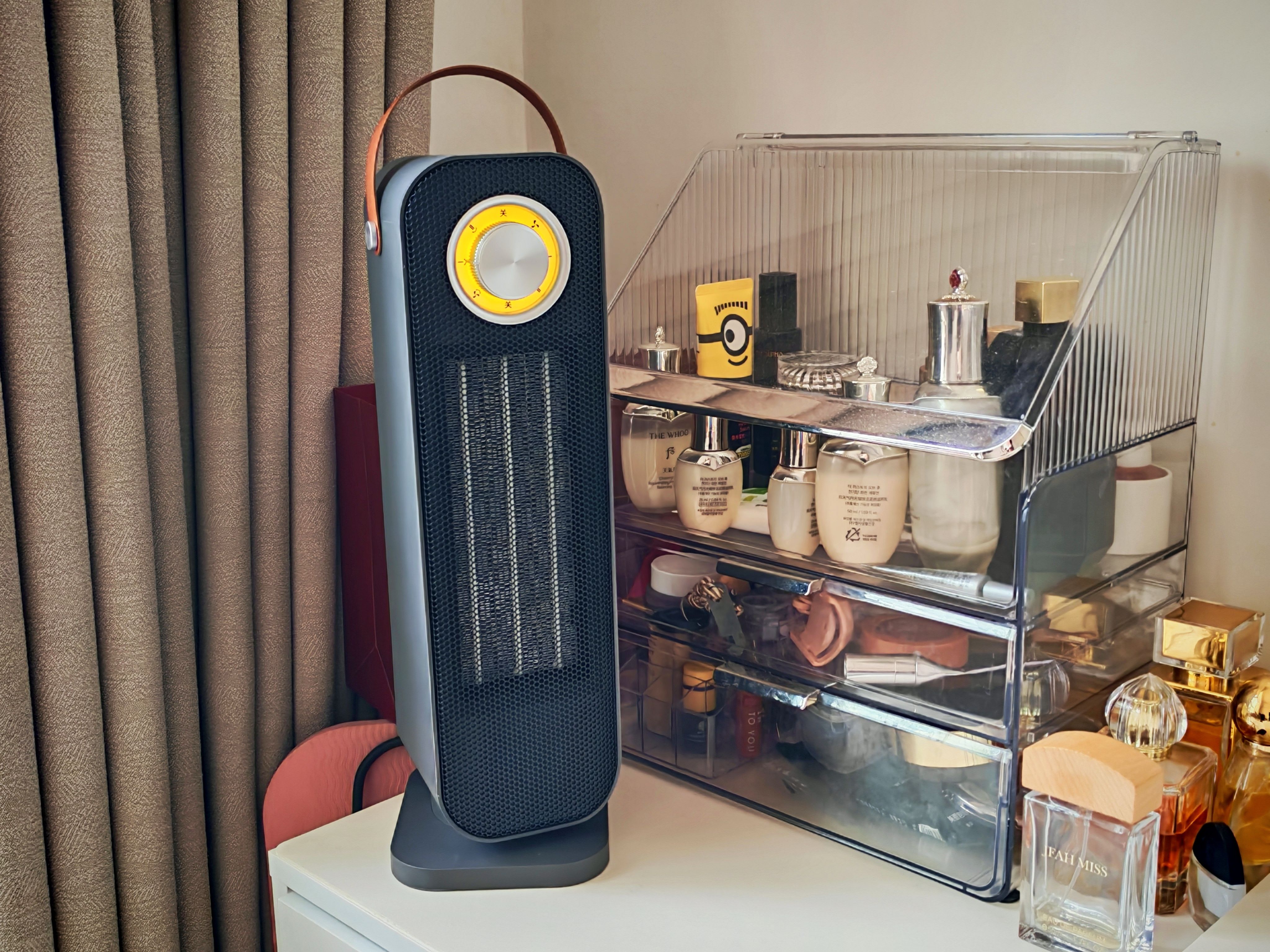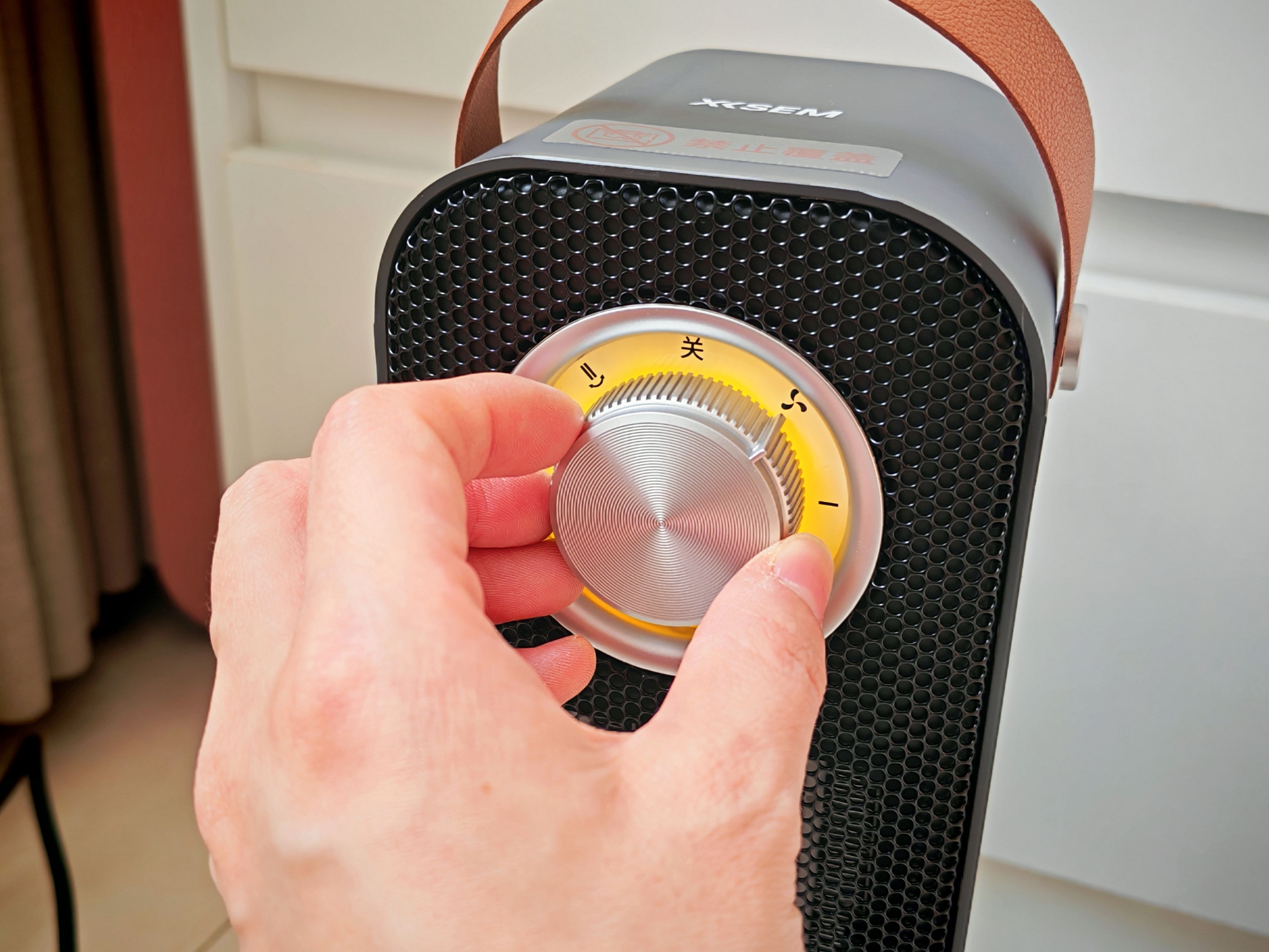 西圣WARM-X的外观设计堪称“颜值与实用并存”。深灰色磨砂机身搭配流线型底座,整体造型简约大气,没有多余的装饰,却透露出一种现代科技感。无论是放在客厅角落、卧室床边,还是办公桌旁,它都能完美融入各种家居风格,甚至像一件精致的装饰品。顶部配备的皮质提手设计尤为贴心,轻轻一提即可轻松移动,女生单手操作也毫无压力。1.45kg的轻盈机身,让我可以随时将它从客厅搬到卧室,或带到浴室使用,彻底摆脱了传统取暖设备笨重、难以移动的困扰。