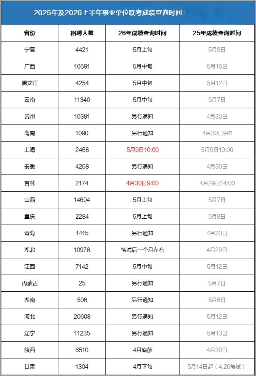 其他省份虽然尚未公布具体日期,但参考2025年各地联考成绩查询安排,多数也会在5月中上旬陆续开通入口。建议大家提前收藏本地人事考试网或事业单位招聘平台,避免错过第一手通知。