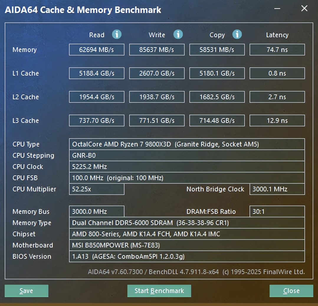 测试平台使用AMD平台,9800X3D处理器搭载微星 B850MPOWER主板配合玖合 星域DDR5 6000 CL36内存进行基准性能测试和超频测试。