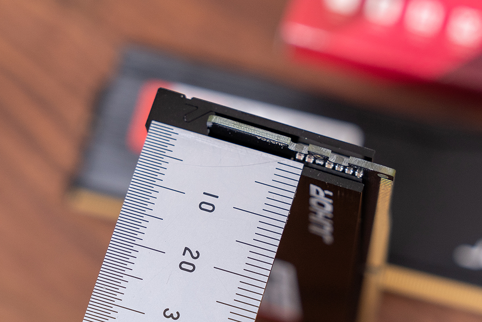产品采用单面内存颗粒布局方案,透过底部散热马甲的间隙可见八颗内存颗粒均匀分布于标签纸所在侧。技术细节方面,内存颗粒与散热马甲之间配置有高导热性能的硅胶缓冲垫,确保高效热传导;对应另一侧则采用专业泡棉材质进行结构填充,以保障稳定的物理支撑与防护性能。