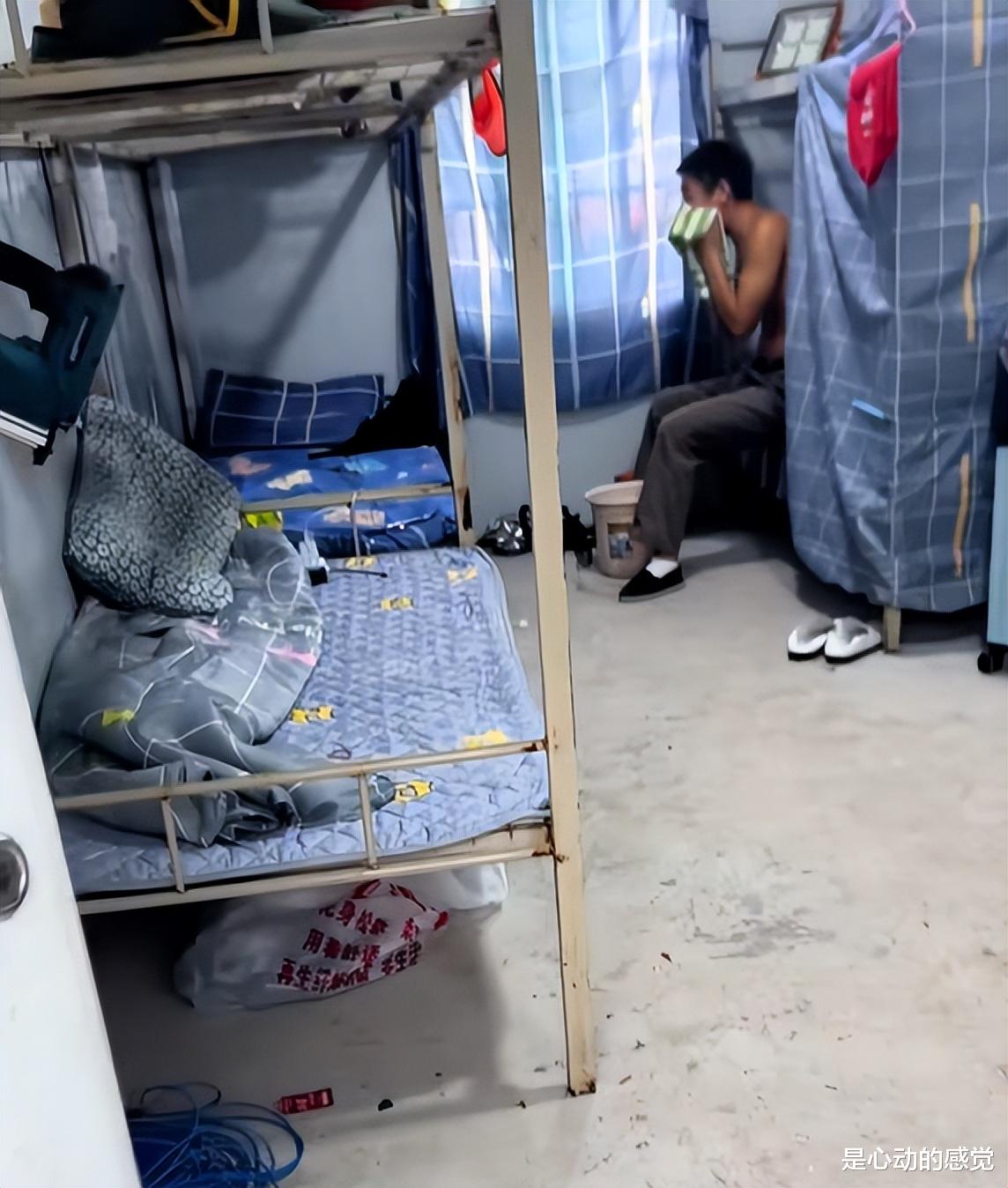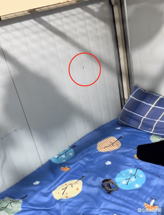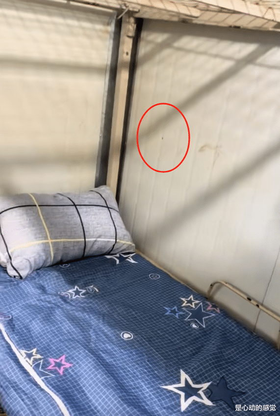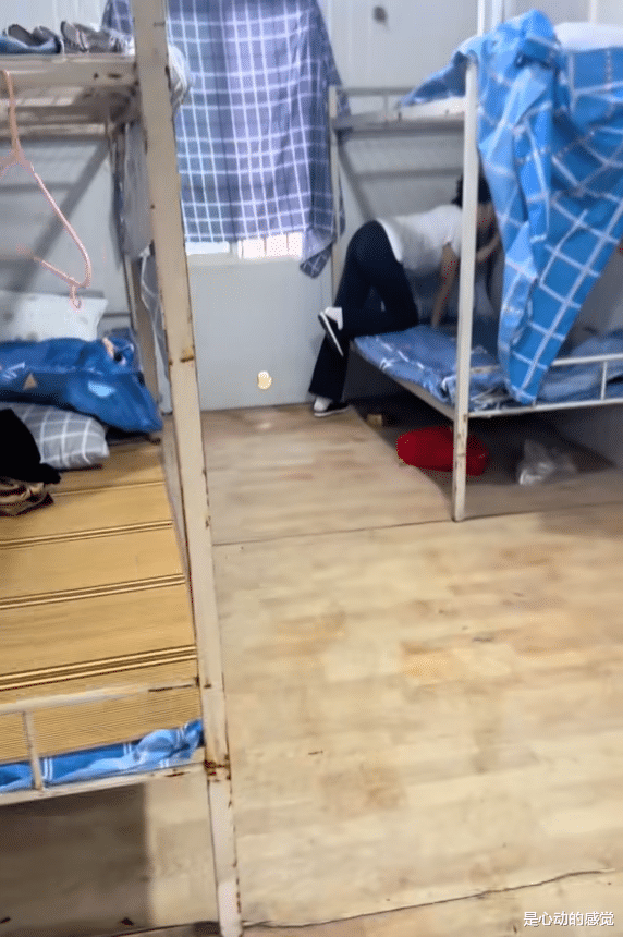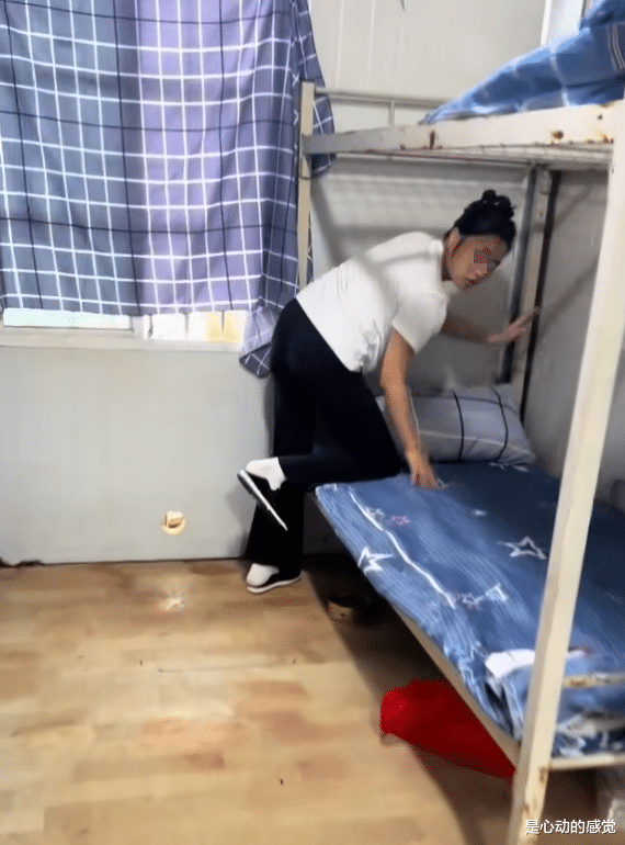 视频是一位男子拍摄的,在视频记录的画面中,当时一位女子正在工棚内休息,整个屋子也只有女子一个人在,只是让人有些好奇的是,女子并不是躺在床上休息,而是趴在床边聚精会神的对着墙看。