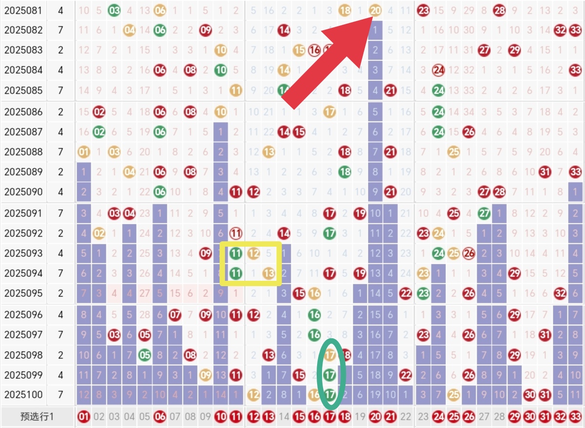 当前遗漏:从上次开出到当前期所间隔的期数。(比如:红色球20号上次开出时间2025年第81期,当前开出2025年第100期,100-81=当前遗漏19期)