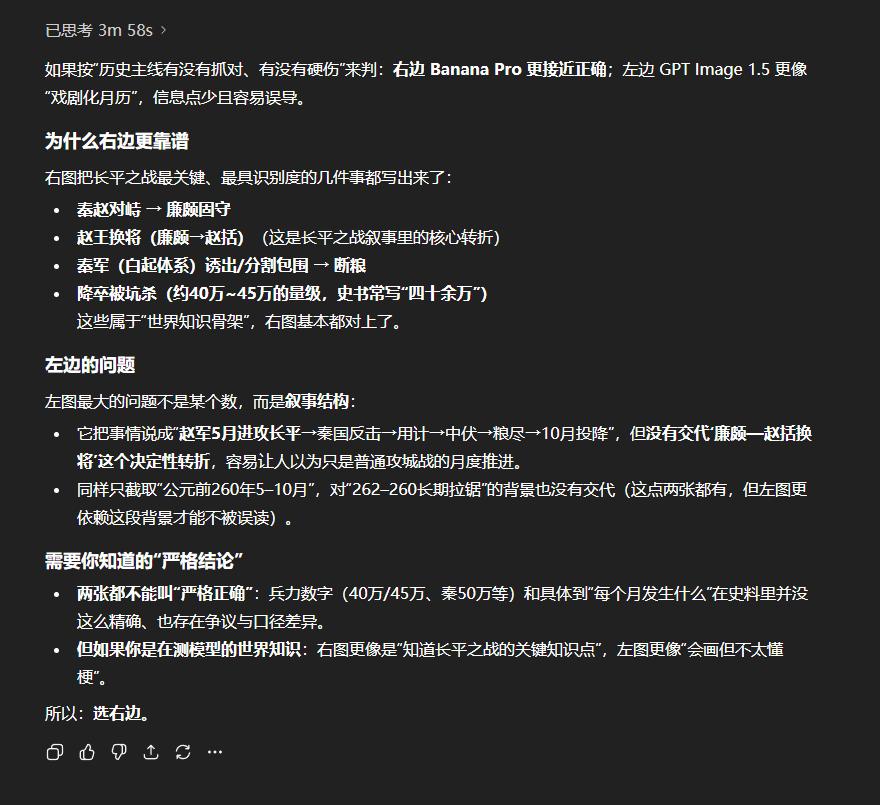 综合来看,在信息准确性上,GPT Image 1.5,确实是不如Banana Pro,而在中文字上,有非常明显的差距,Banana Pro的中文字还是很稳的。
