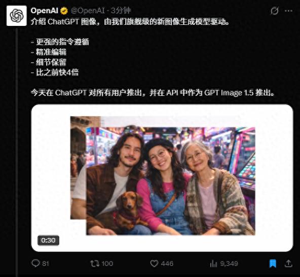所以这一次,不是传闻中的GPT Image 2.0,跟Nano Banana Pro一样,用了一个小版本号去升级,用了1.5。