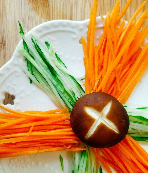 13.将黄瓜和胡萝卜切丝,这里我用的是刮丝器。