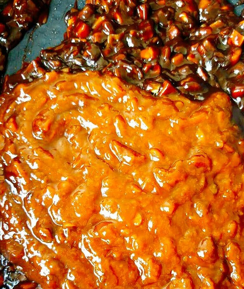 7.倒入适量凉白开,小火熬制10-15分钟,要不停搅拌防止粘锅哦!