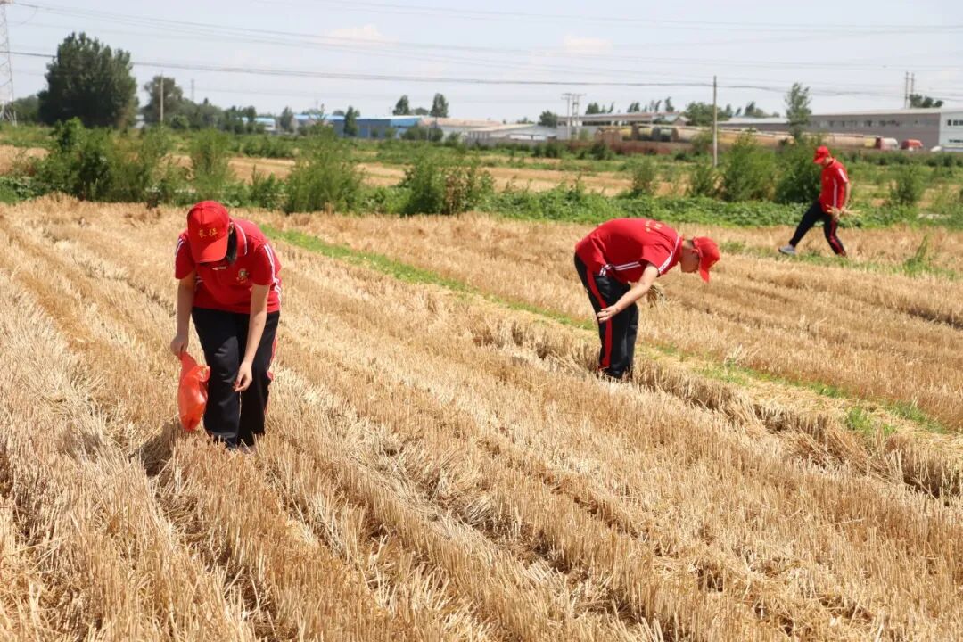 “麦田实践”悟艰辛:麦收季节,同学们走进田间参与捡麦穗活动,在汗水里体会 “粒粒皆辛苦” 的深刻含义。