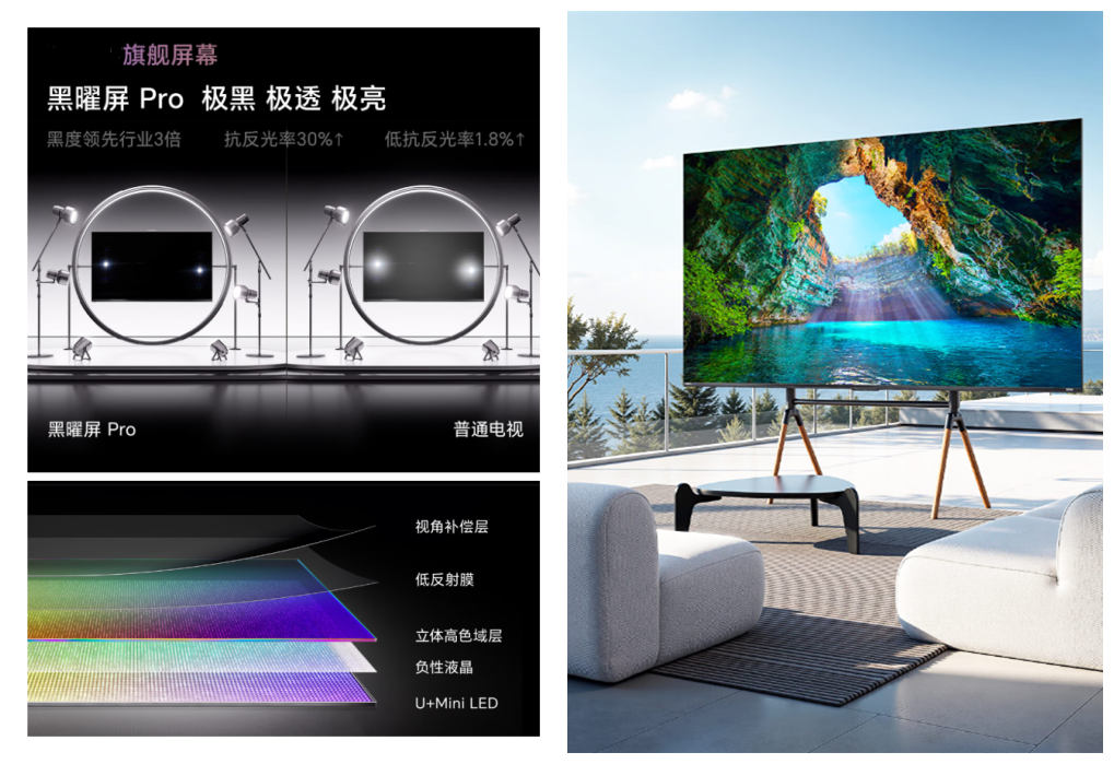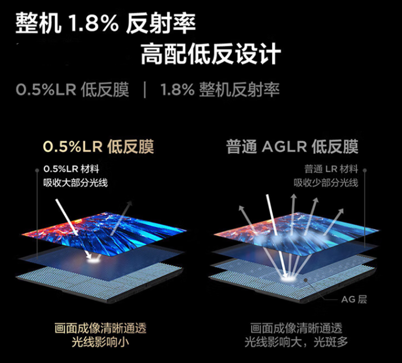 最亮眼的是 0.5% LR 低反膜技术,整机反射率仅 1.8%(成本是普通 AG 膜的 10 倍),白天观影不用拉窗帘,能耗还降低 16%。服务上也省心:2 年整机保修 + 晒单送 1 年延保,免费上门勘测 + 送装一体,直接省下几百安装费,刚需党闭眼入不亏。