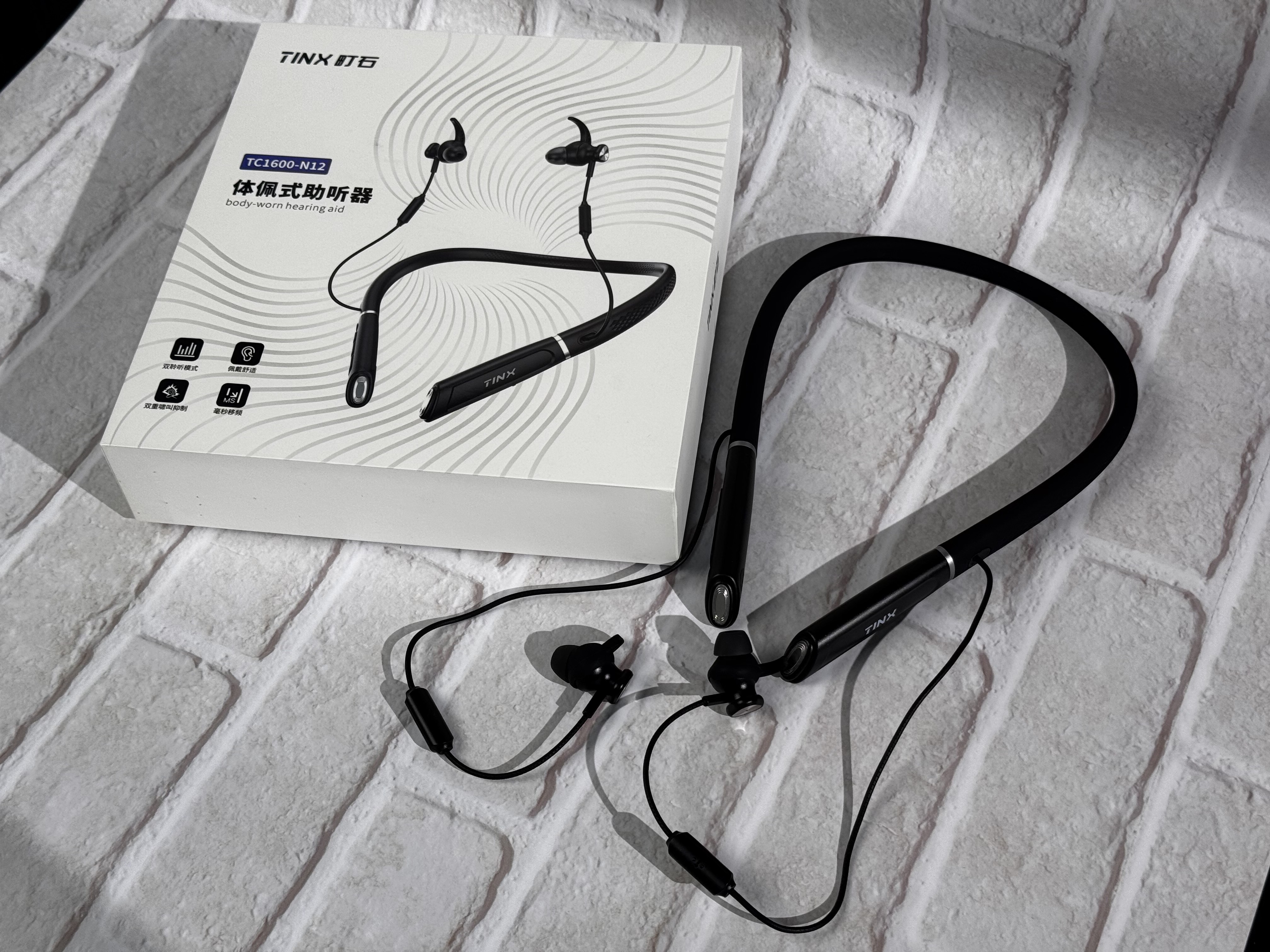 先讲讲外观设计这块吧。町石 tinx 挂脖助听器的外包装挺简洁的,看着就挺舒服,而且质量挺好,材质挺轻盈的,但是又很结实,耐用性可不比那些高端机型差呢。
