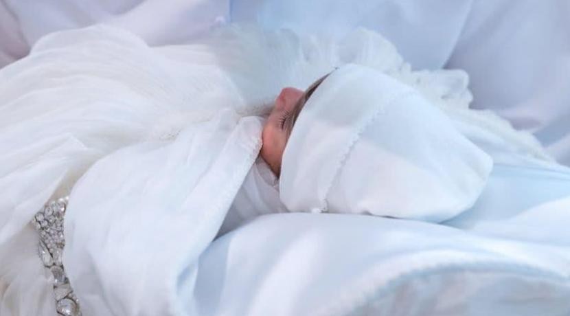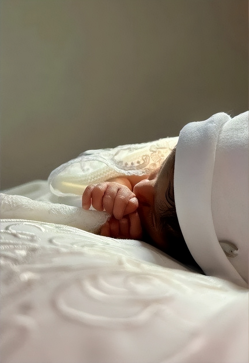 而今,小公主不过一周岁,小小的她穿着如此奢华又高贵的白色珍珠裙子,戴着同色的珍珠发饰,其尊贵的身份早已经不言自明。