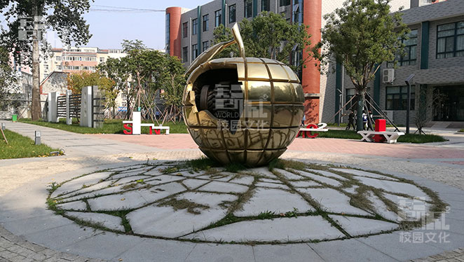 校园中心的“金苹果”雕塑,成为阐释“探索精神”的视觉符号。它融合了多重意象:伊甸园的苹果代表知识与选择,牛顿的苹果象征科学发现,乔布斯的苹果寓意创新与变革。这座雕塑不仅是一处景观,更成为教师开展跨学科教学的现实素材。