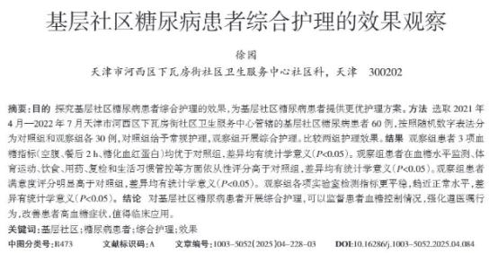 参考资料:徐园.基层社区糖尿病患者综合护理的效果观察[J].中国城乡企业卫生,2025,40(04):228-230.