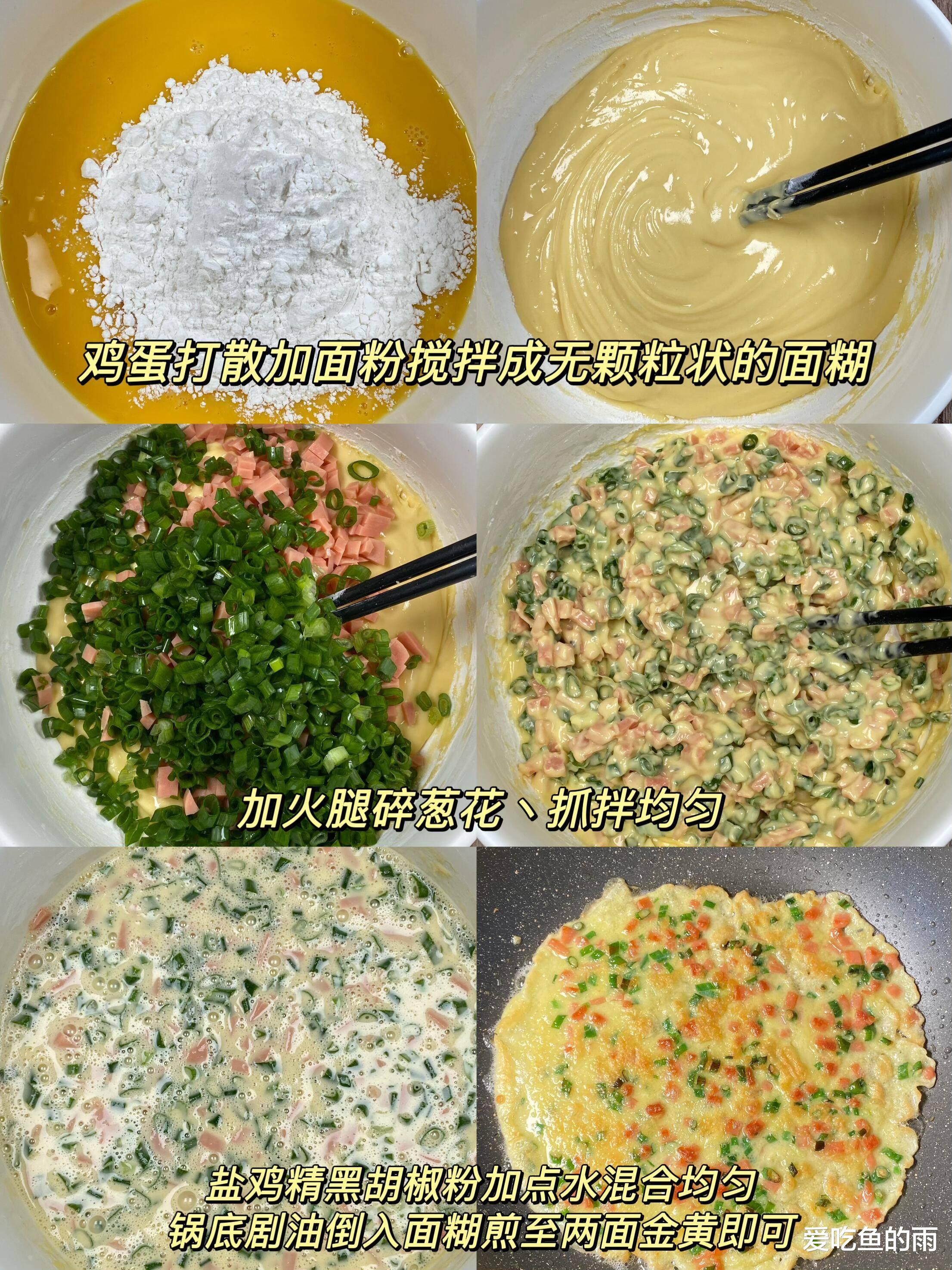 葱花火腿鸡蛋软饼:10分钟搞定的早餐魔法