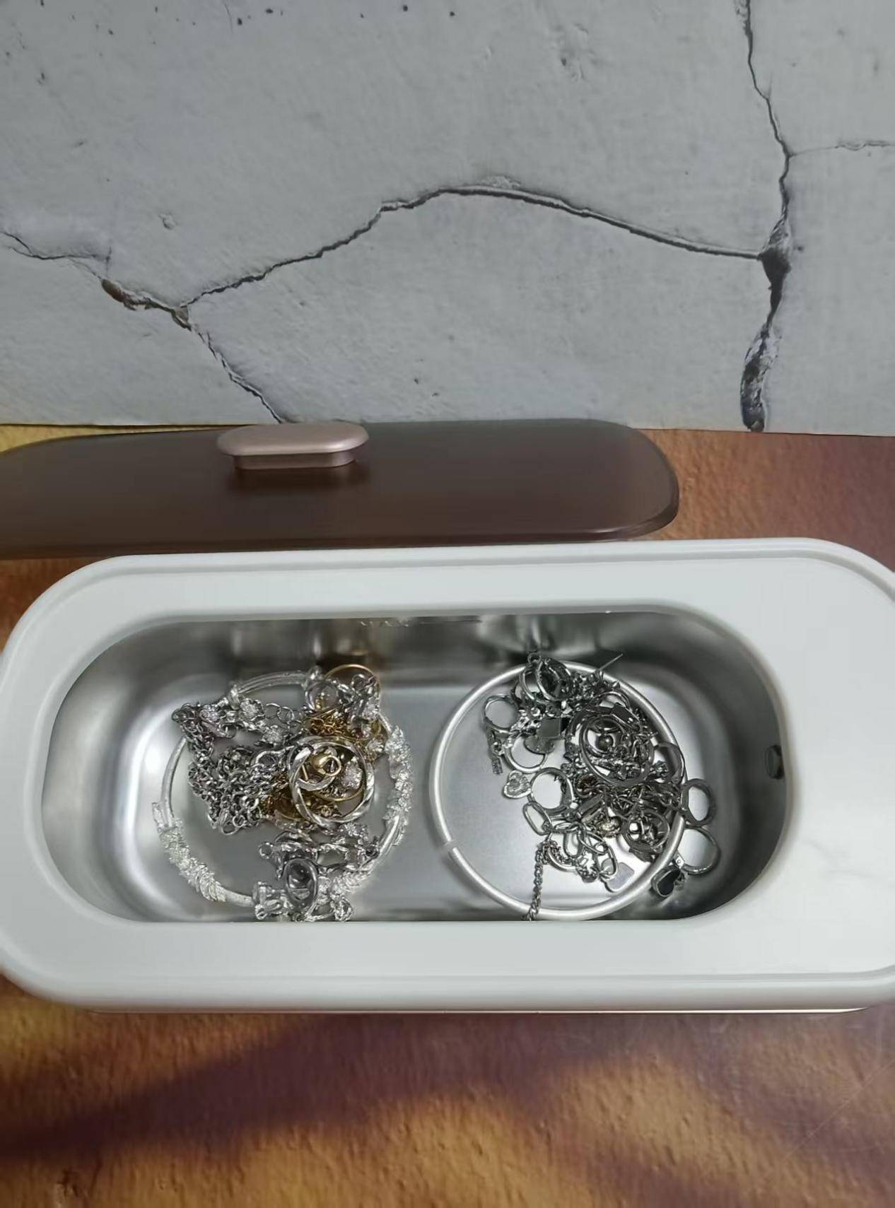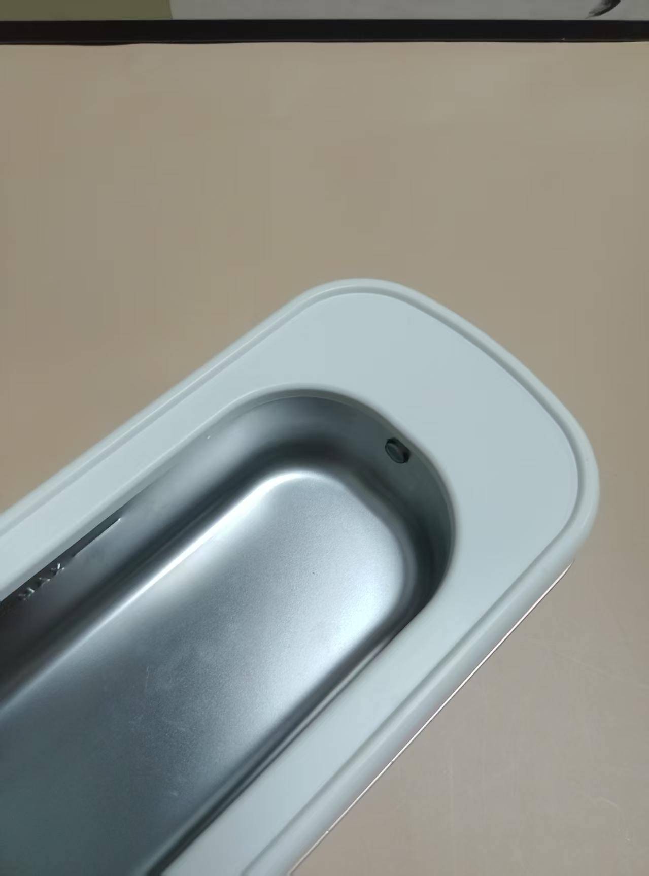 在清洁方面,这款同样搭载35W电机,可以提供40000hz的超声波振动频率,通过超声波振动,带动水分子360°包裹物品,并进入平时擦不到的物品缝隙,能有效地清洁眼镜缝隙、首饰纹路中的顽固污渍!它的清洗槽采用304不锈钢材质,对比塑料内胆,更为耐用且易于清洁。容量方面,槽体容量约为600ml,适合清洗眼镜、首饰、剃须刀等日常物件。美中不足的是,其清洁动力相对柔和,对于重度污垢可能需要延长清洗时间,更适合需清洗物品较多、清洗物品污垢不算特别顽固的用户!