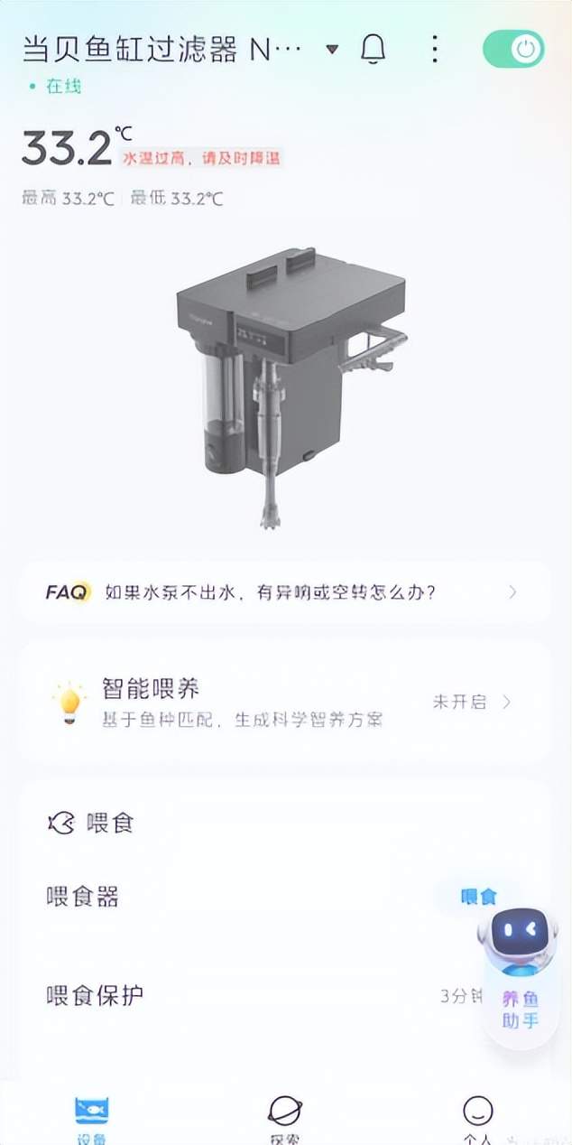 自动喂食协同: 它是自带远程自动喂食器的。最聪明的逻辑是:喂食时,AI会自动调低流速,防止食物被冲走,喂完再恢复。这种联动,普通滤器根本做不到。