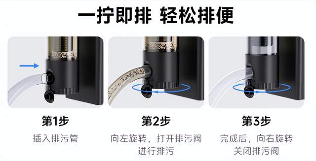 当贝做得更绝的地方在于它的维护体验。 很多带鱼马桶的滤器清理起来很麻烦,但当贝的设计逻辑是“一抽即净”。配合它的高流速,能把缸底的脏东西迅速吸入“马桶”,你只需要定期倒掉马桶里的脏东西,主滤材甚至可以半年不用洗。这就解决了养鱼最烦人的“频繁洗滤棉”问题。