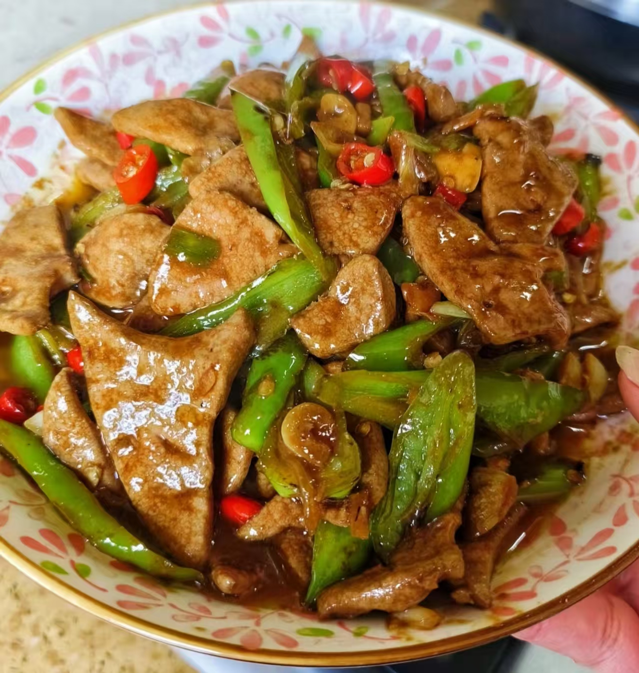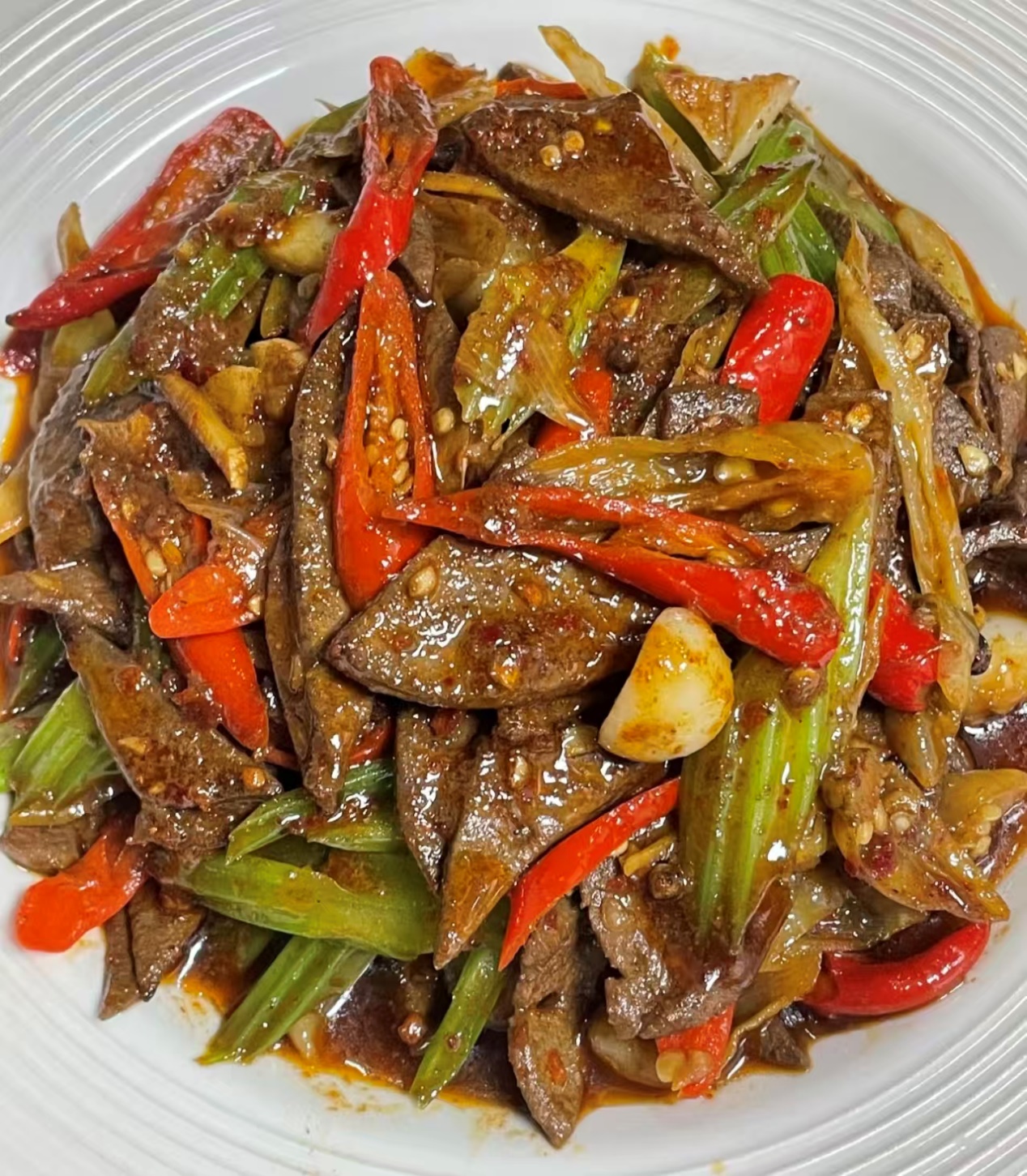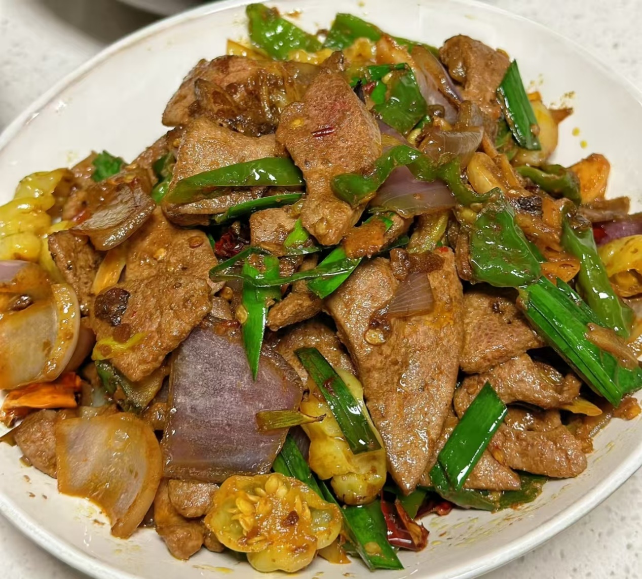 盛盘,肝片在灯光下抖着亮晶晶的酱色,筷子轻轻一夹就弯成“拱桥”,咬下去“噗嗤”爆汁,带一点啤酒麦香、一点奶香,完全吃不出腥味。剩下的彩椒脆生生的,木耳“咔嗞”作响,汤汁拌饭能送三碗。我家那位平时“猪肝恐惧症”的娃,这次居然主动添盘,边嚼边喊:“妈妈,这肝片会跳舞!”