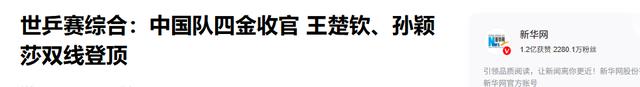 除了男双,国乒队在其他4项比赛上,都如愿获得 冠军,笑到最后。