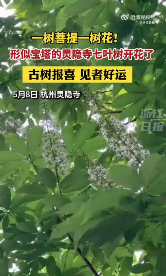 5月8日,杭州灵隐寺迎来了600多岁古树开花奇景,寺内那株饱含岁月沉淀的七叶树悄然绽放,花朵簇拥,仿若云端散落的白色宝塔,点缀在古刹的青瓦间,为这方圣地平添了几分超凡脱俗之气。七叶树,作为佛门圣树的代表之一,其花开不仅仅是自然界的一场视觉盛宴,更蕴含着深刻的宗教与文化意义。