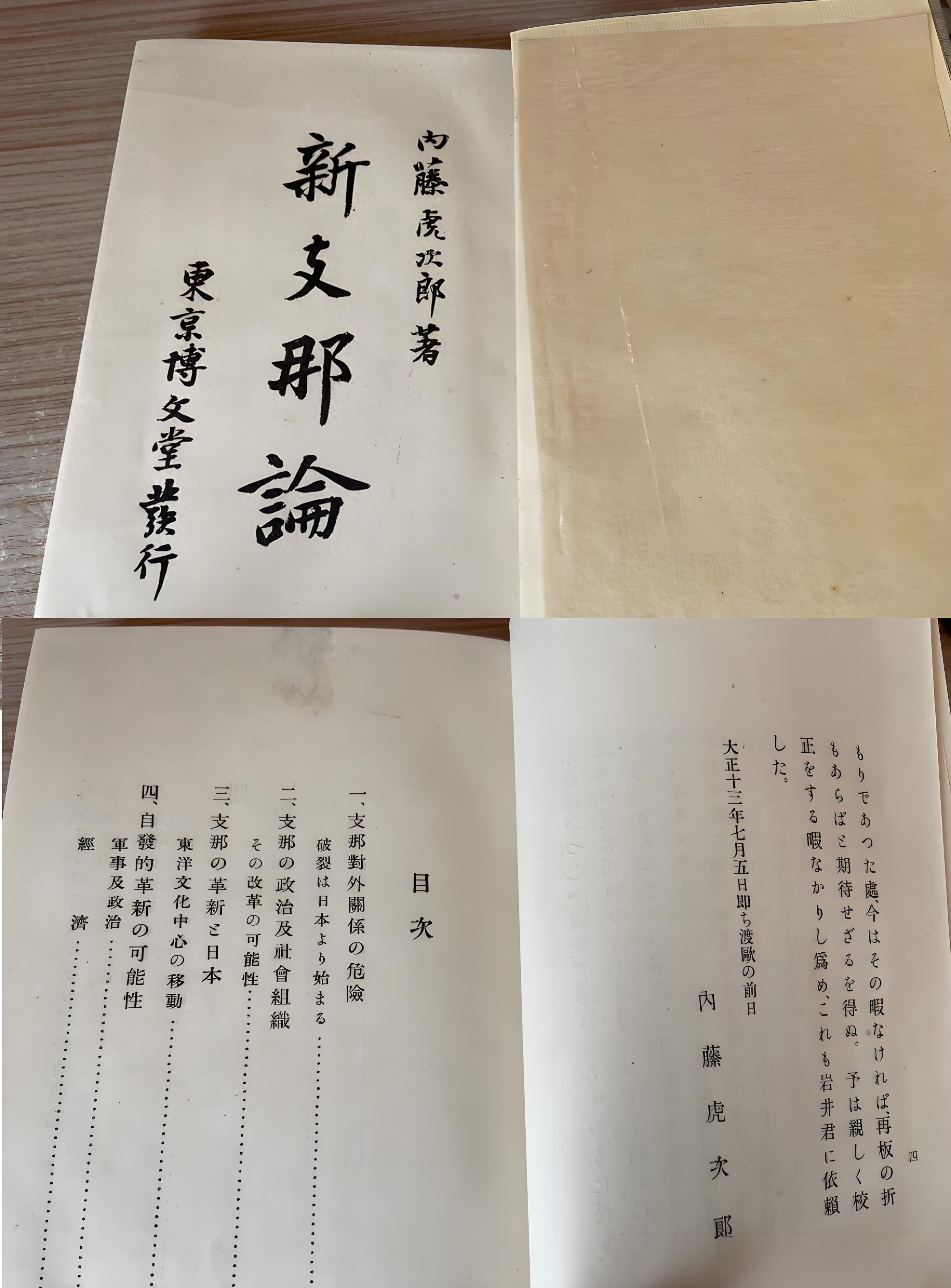 不过话说回来,在内藤湖南退休之前,他还是针对中国时局发表过两篇尖锐评论,一篇是文章《回归中国》,另一篇是著作《新中国论》。