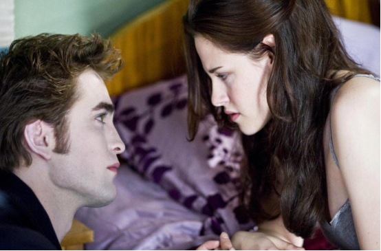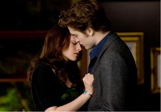 此时人类在吸血鬼的面前是多么渺小,终将失去的短暂寿命 不堪一击的脆弱生命,没有永远的事情。克制的他,温柔的他,尊重她,热爱她。但是坠入爱河的贝拉怎么能够忍受自己的衰老与所爱之人永生的矛盾呢?因为爱得深沉,她才无比期望永远。哪怕放弃与父母相见的机会,哪怕会伤害友人的感情,随时都可能被失控的吸血鬼剥夺生命,哪怕自己也会变成一只吸血鬼,失去体温,杀戮其他生命,面对复杂的纠纷,面对死亡的危险,只要有可能和你永远。
